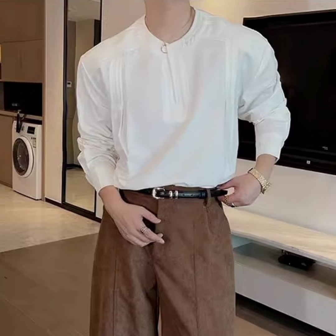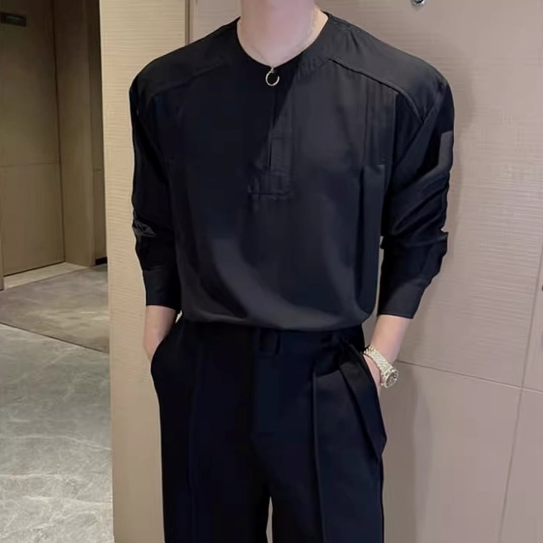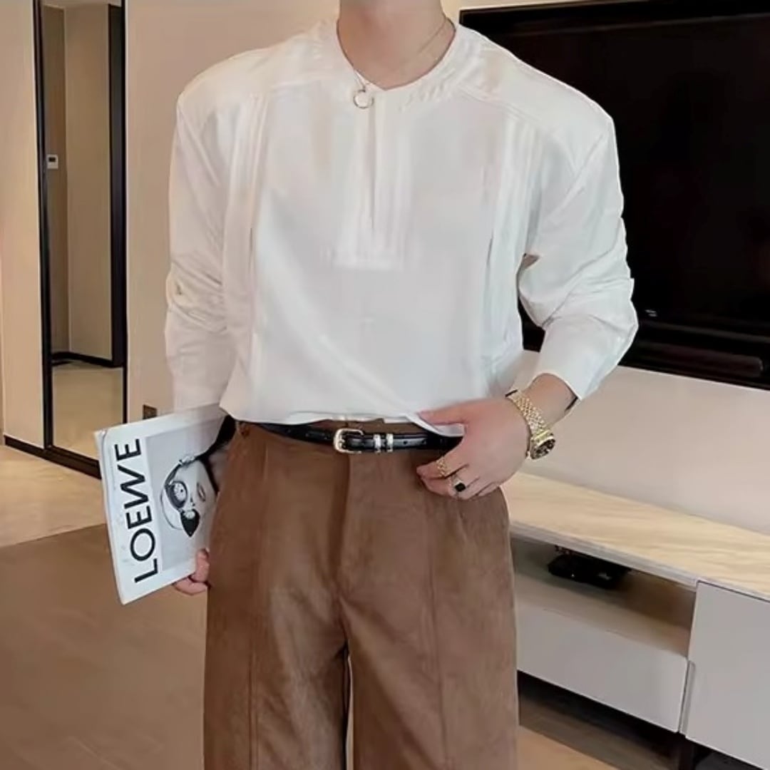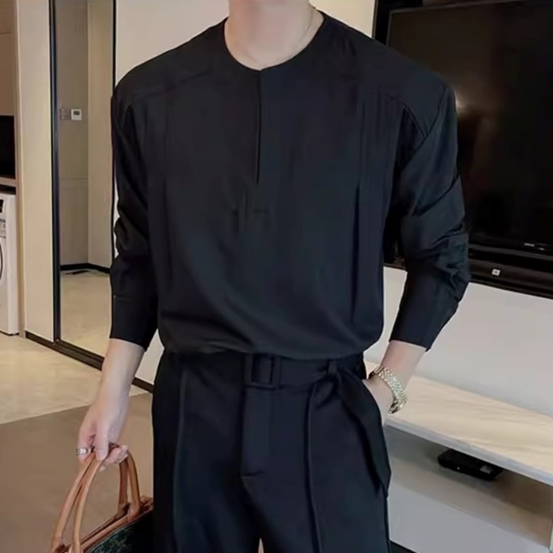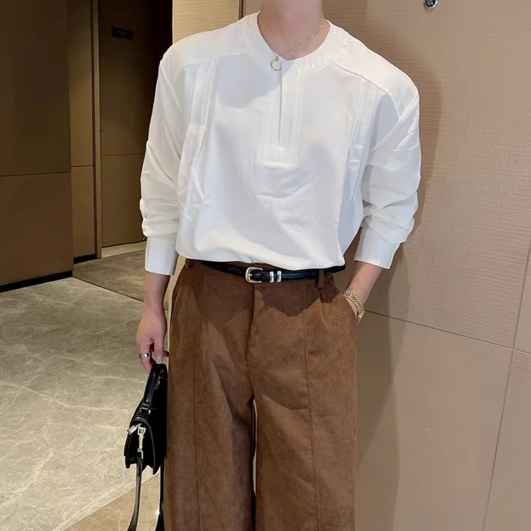 ノーカラー タックデザインプルオーバーシャツ 2カラー D12291