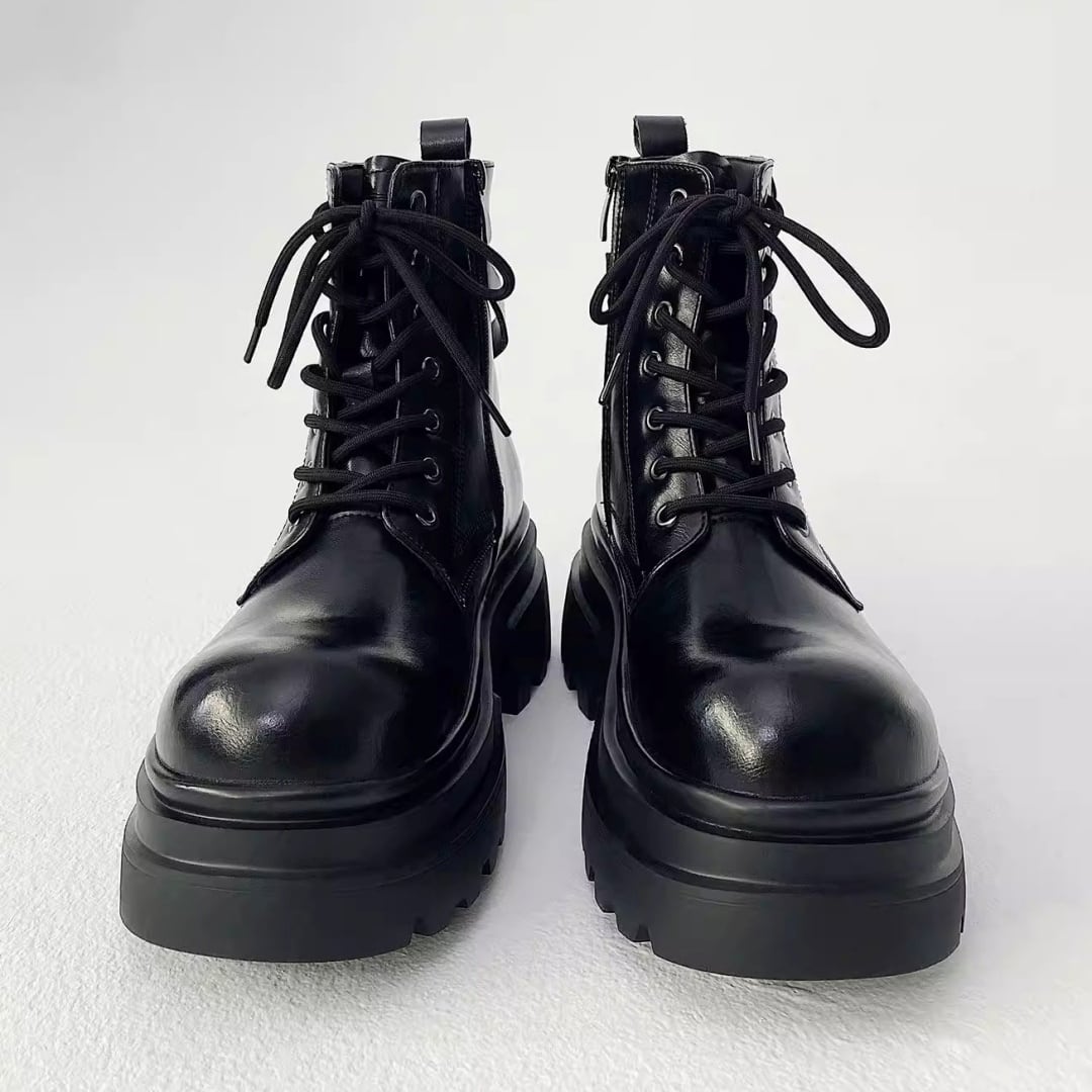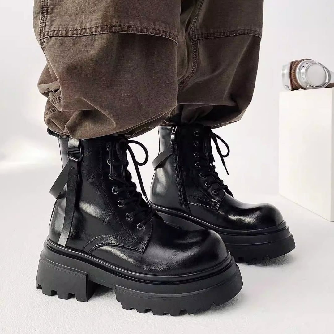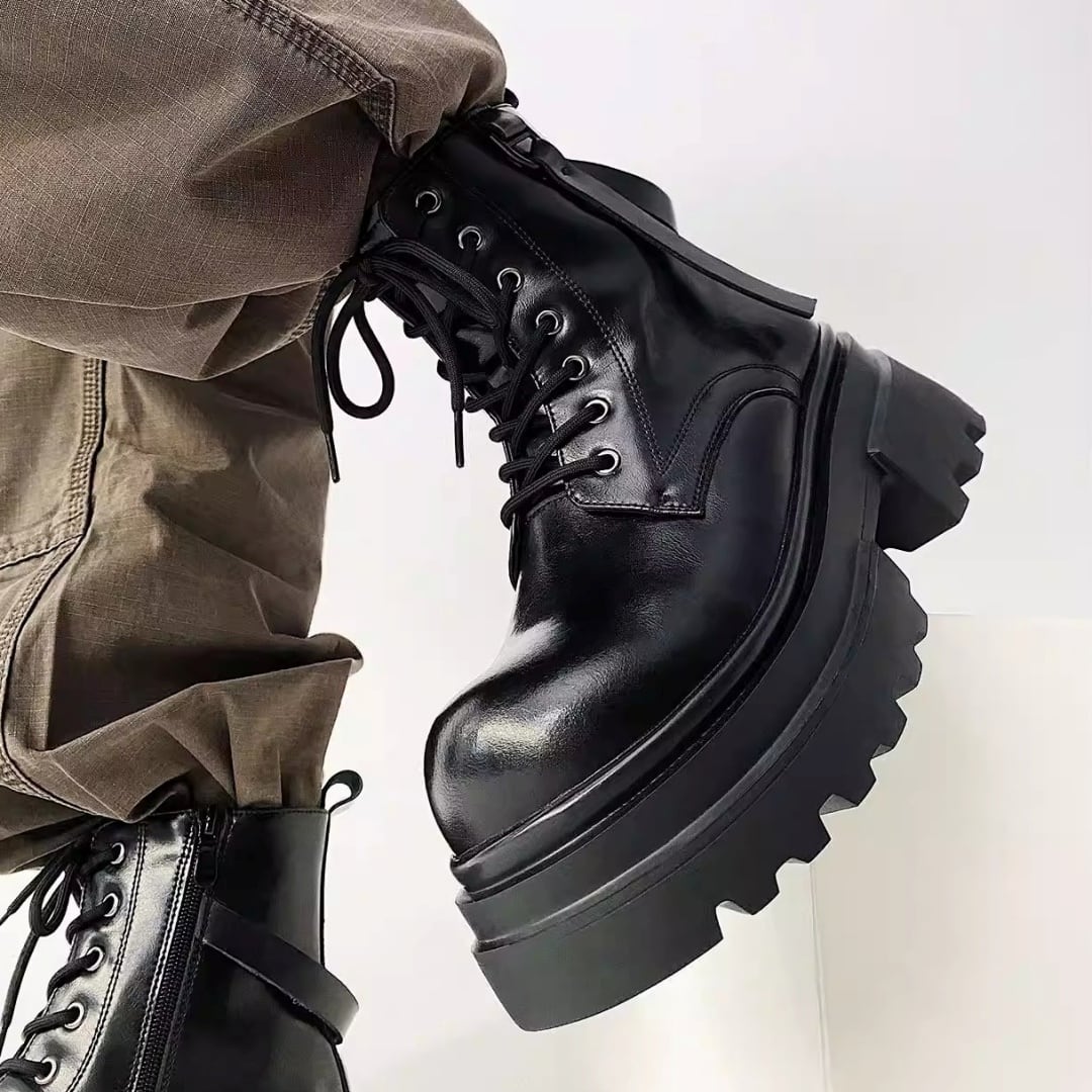 チャンキーソール ストラップデザインレースアップブーツ D12292