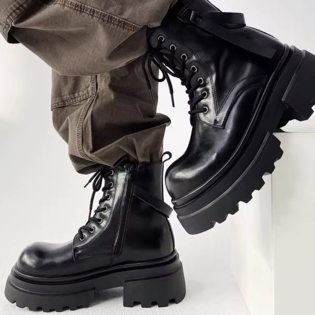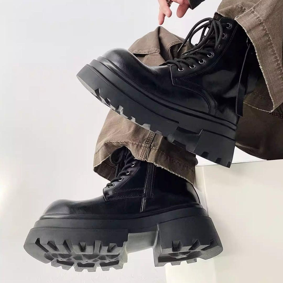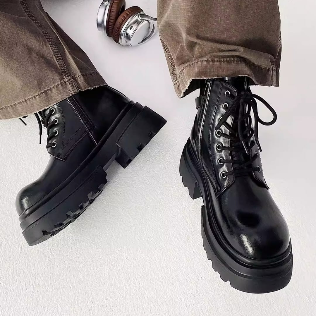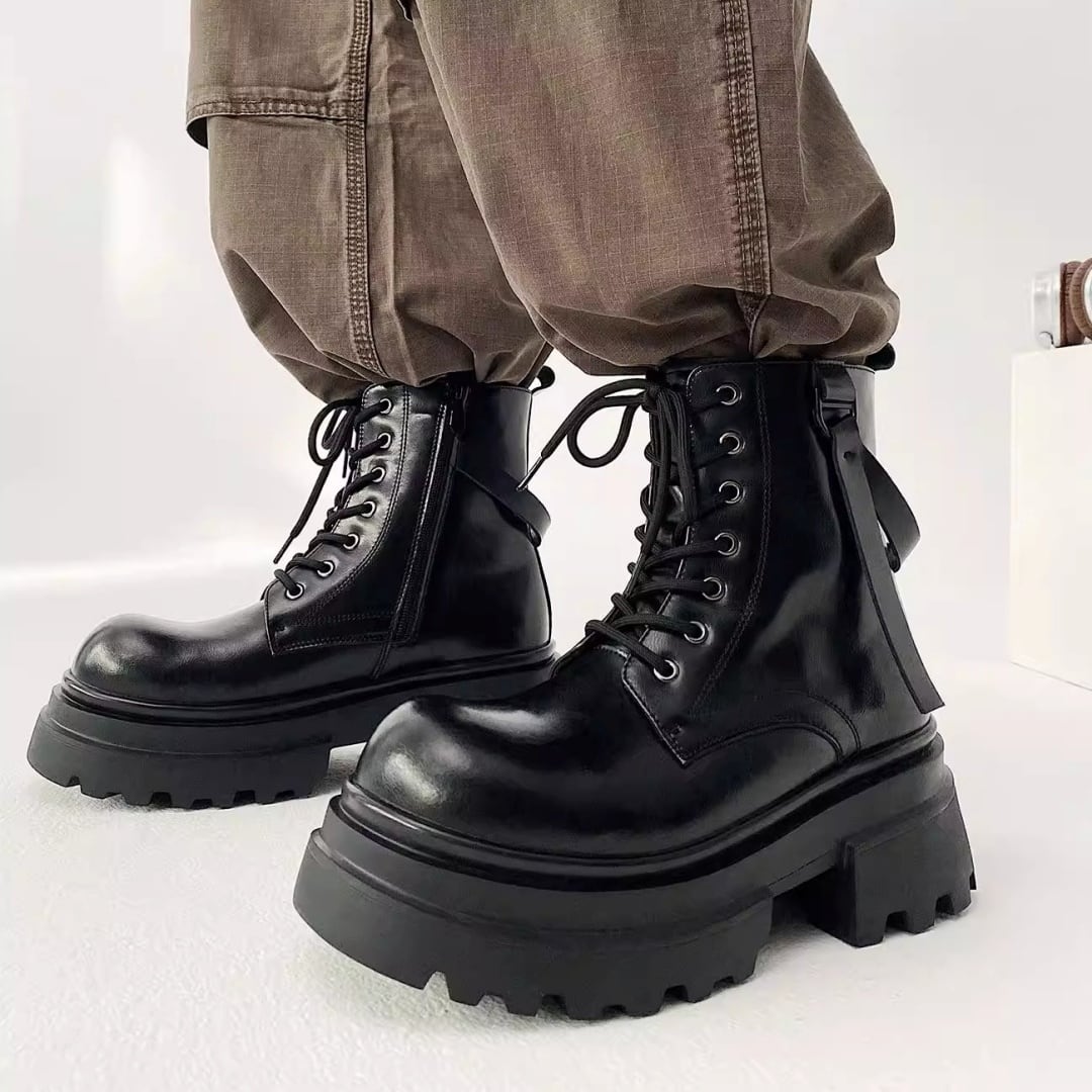 チャンキーソール ストラップデザインレースアップブーツ D12292