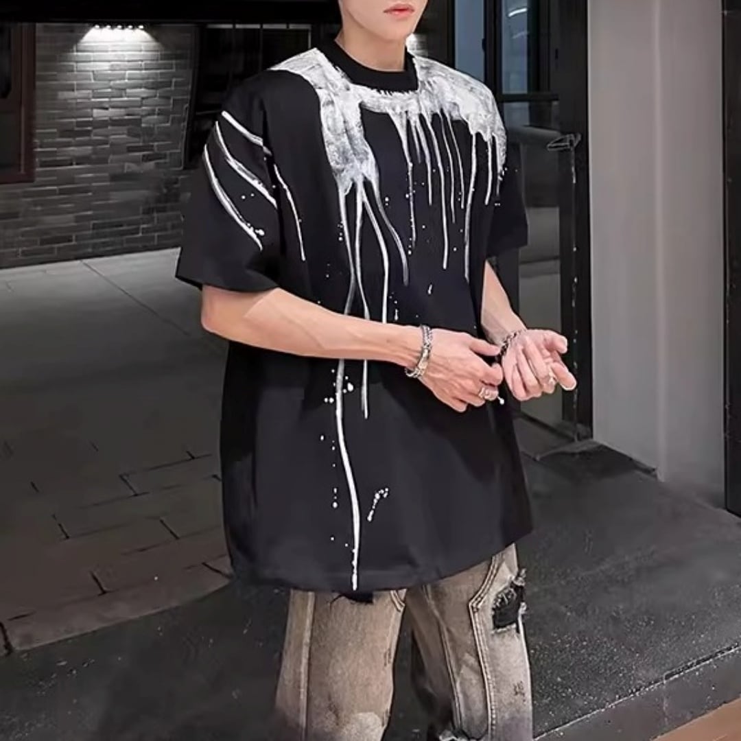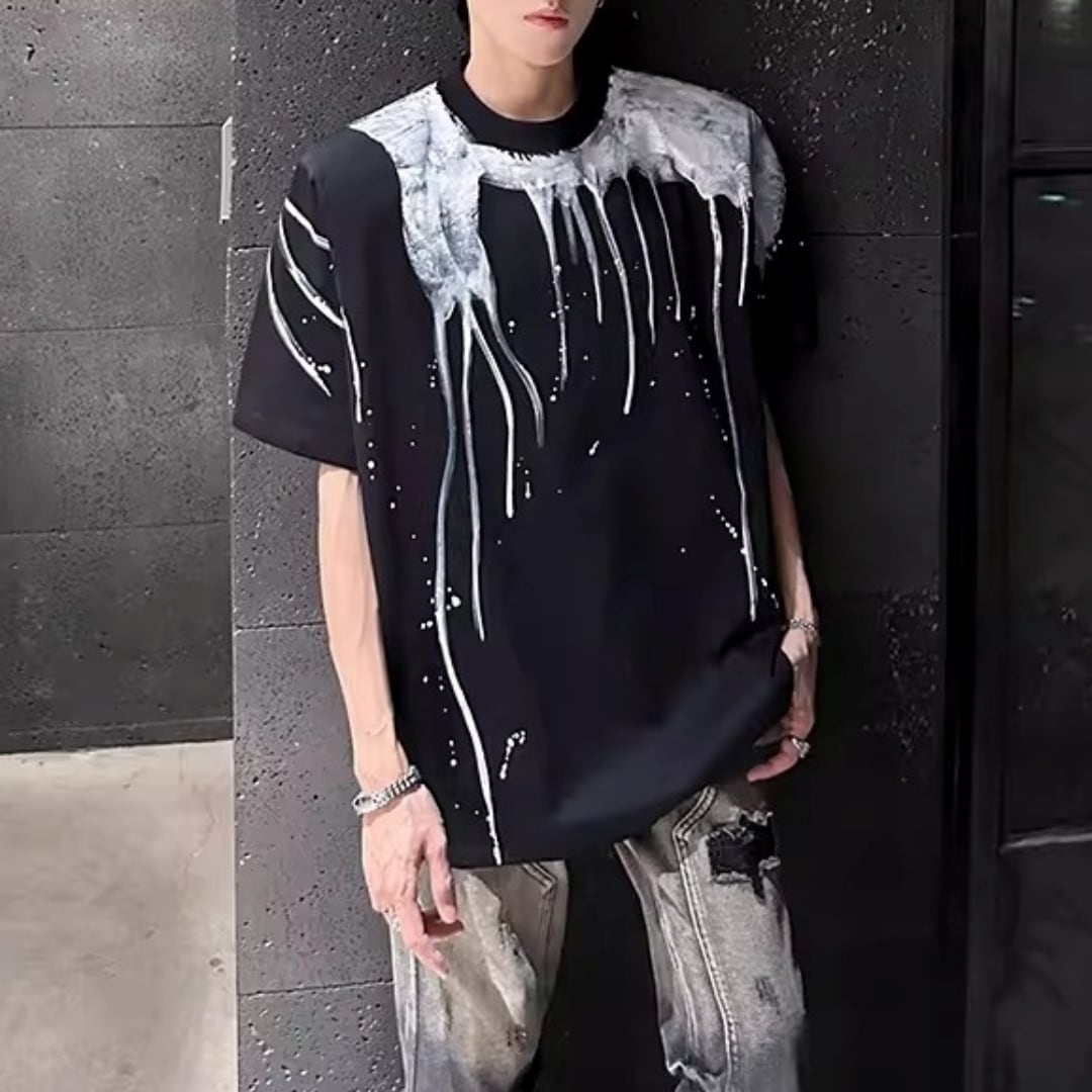 スプラッターペイントデザイン グラフィックTシャツ 2カラー D12299