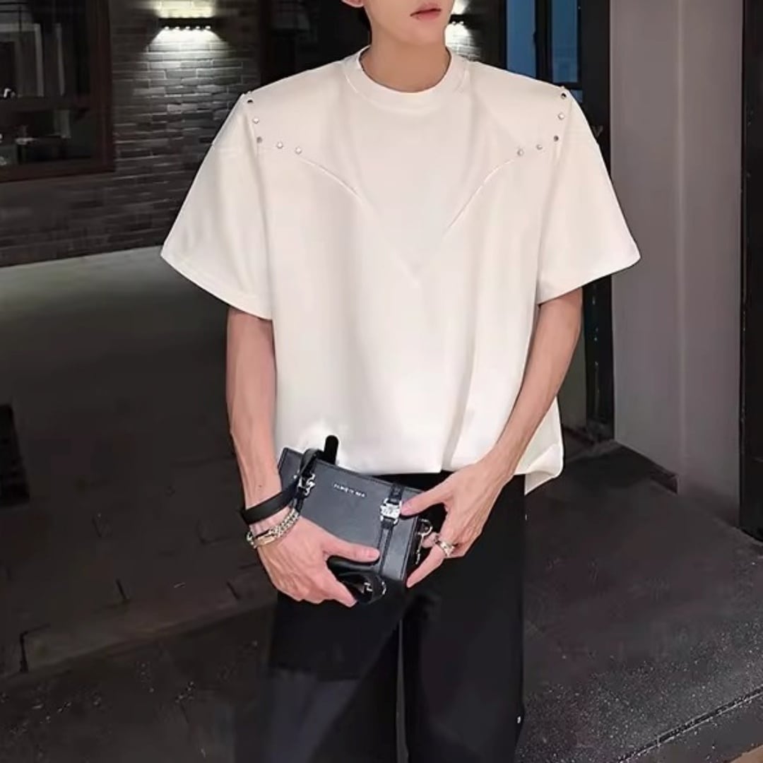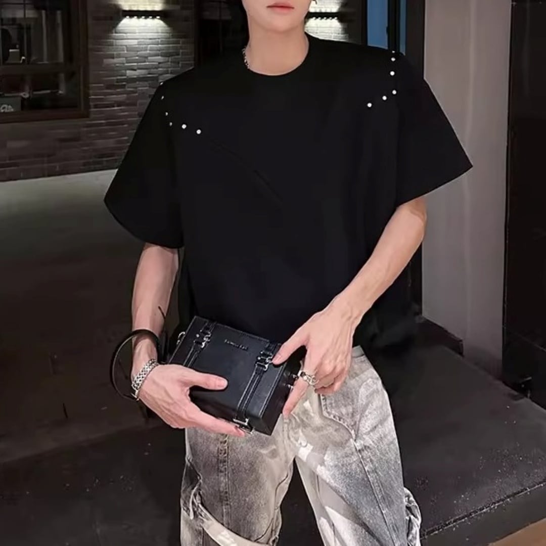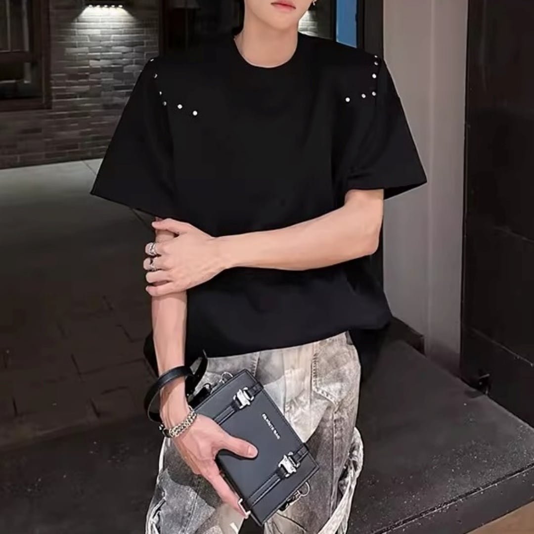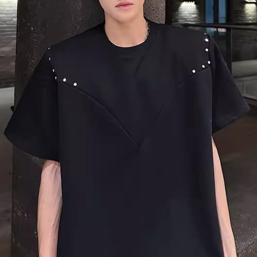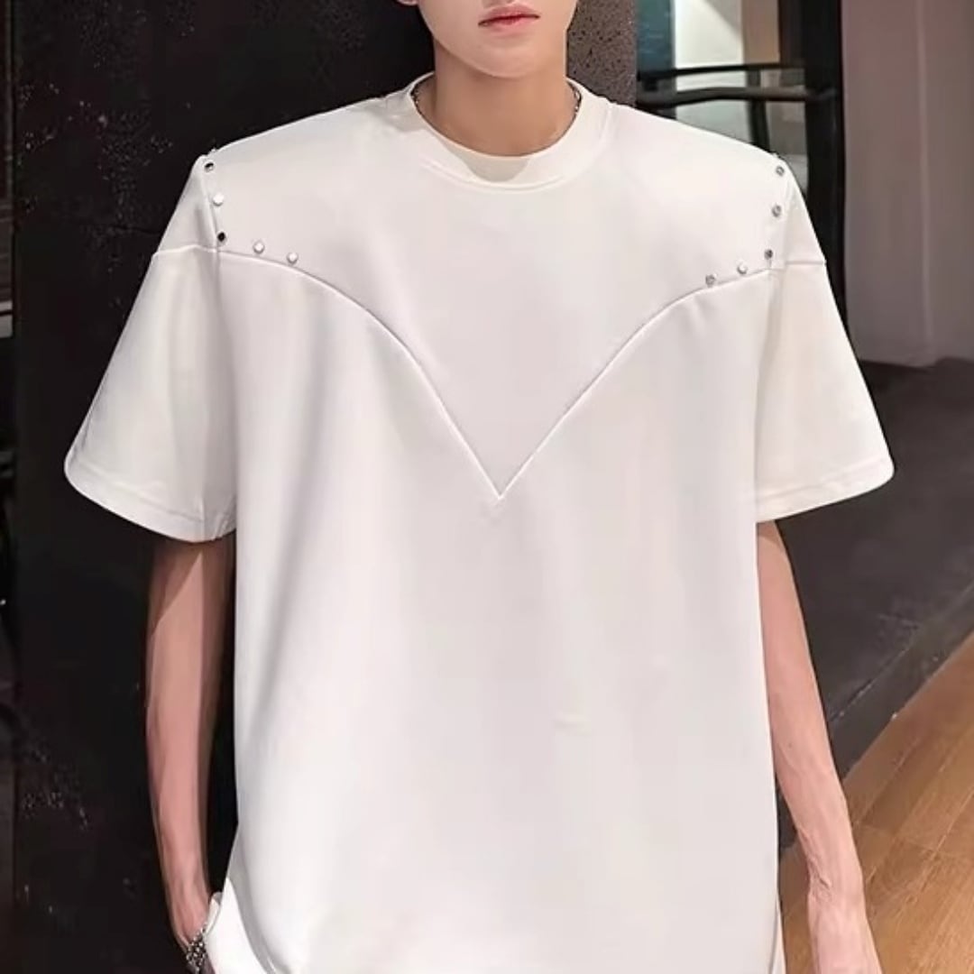 スタッズアクセント VラインTシャツ 2カラー D12300