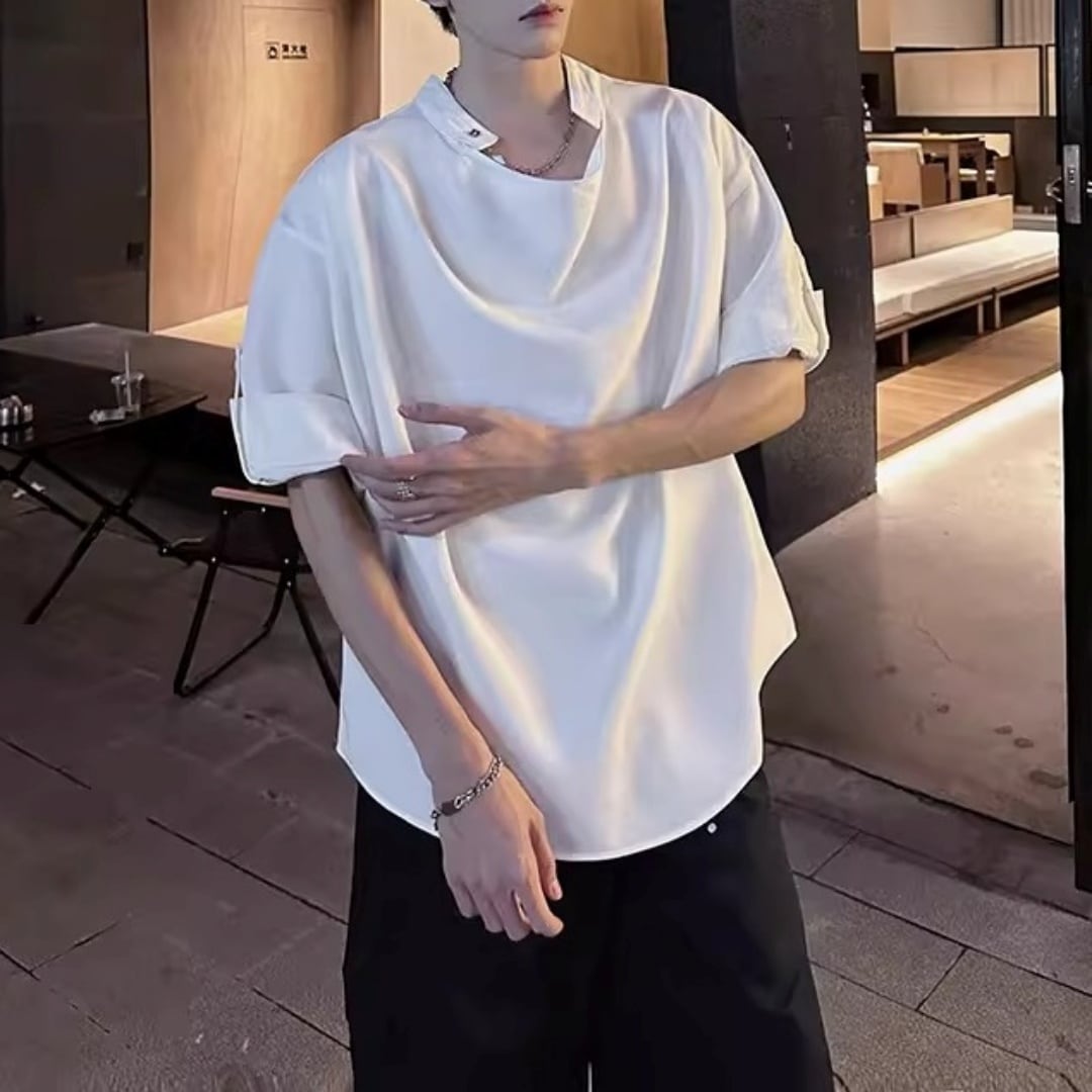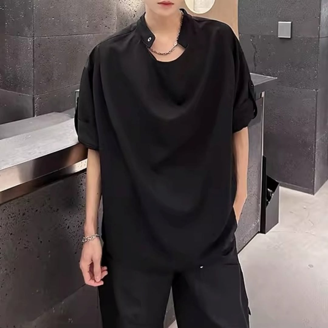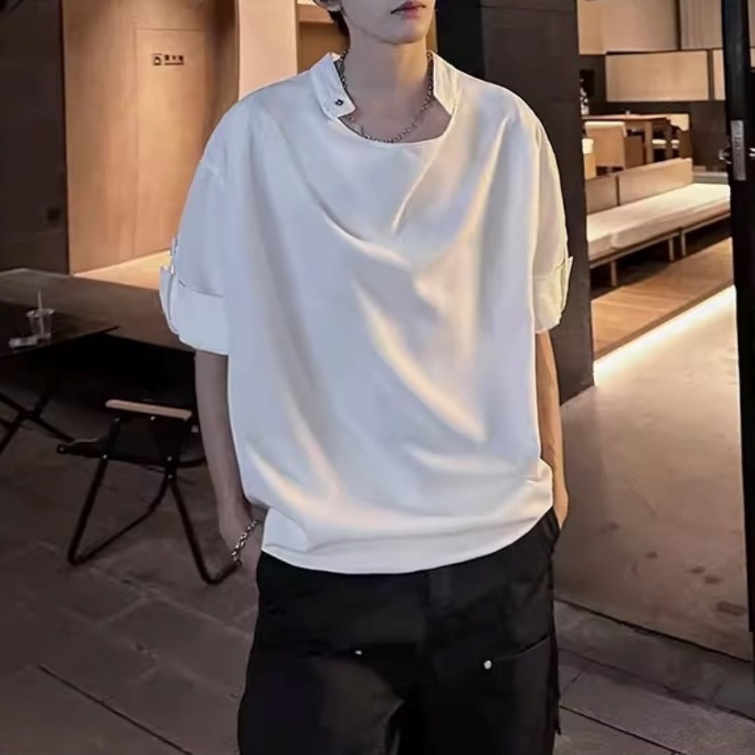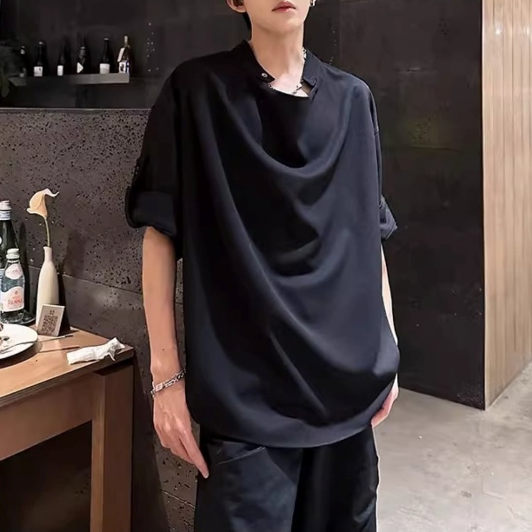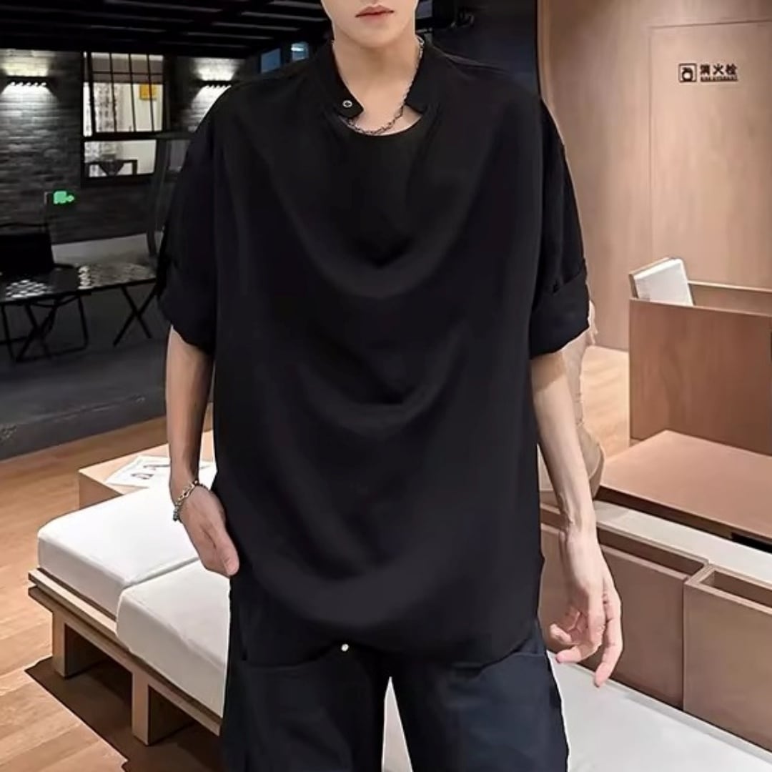 ロールアップスリーブ ドレープデザインTシャツ 2カラー D12301
