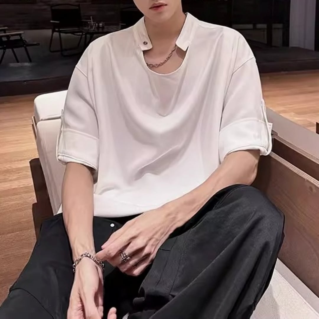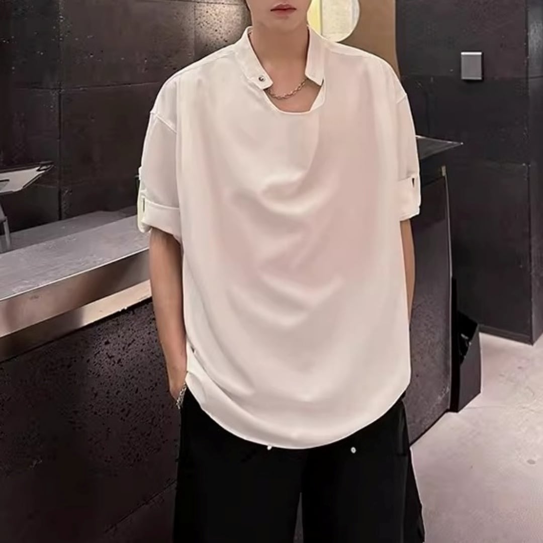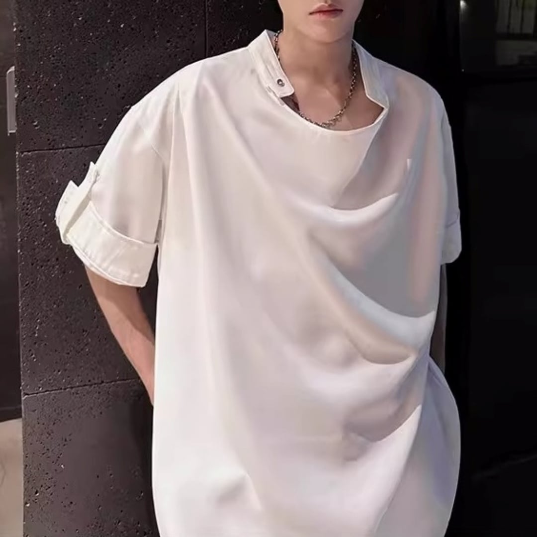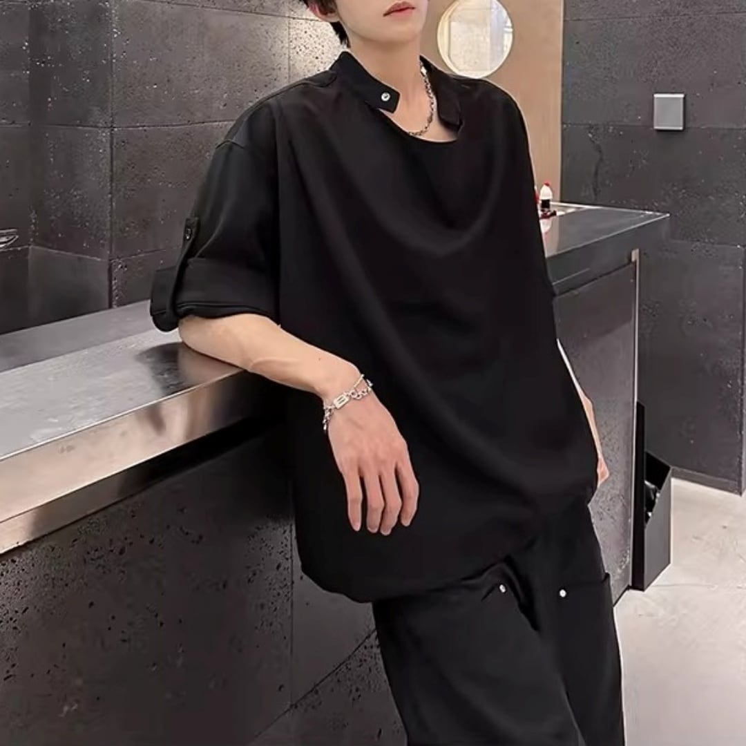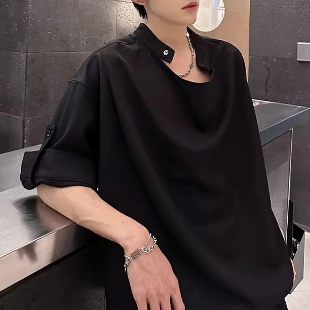 ロールアップスリーブ ドレープデザインTシャツ 2カラー D12301