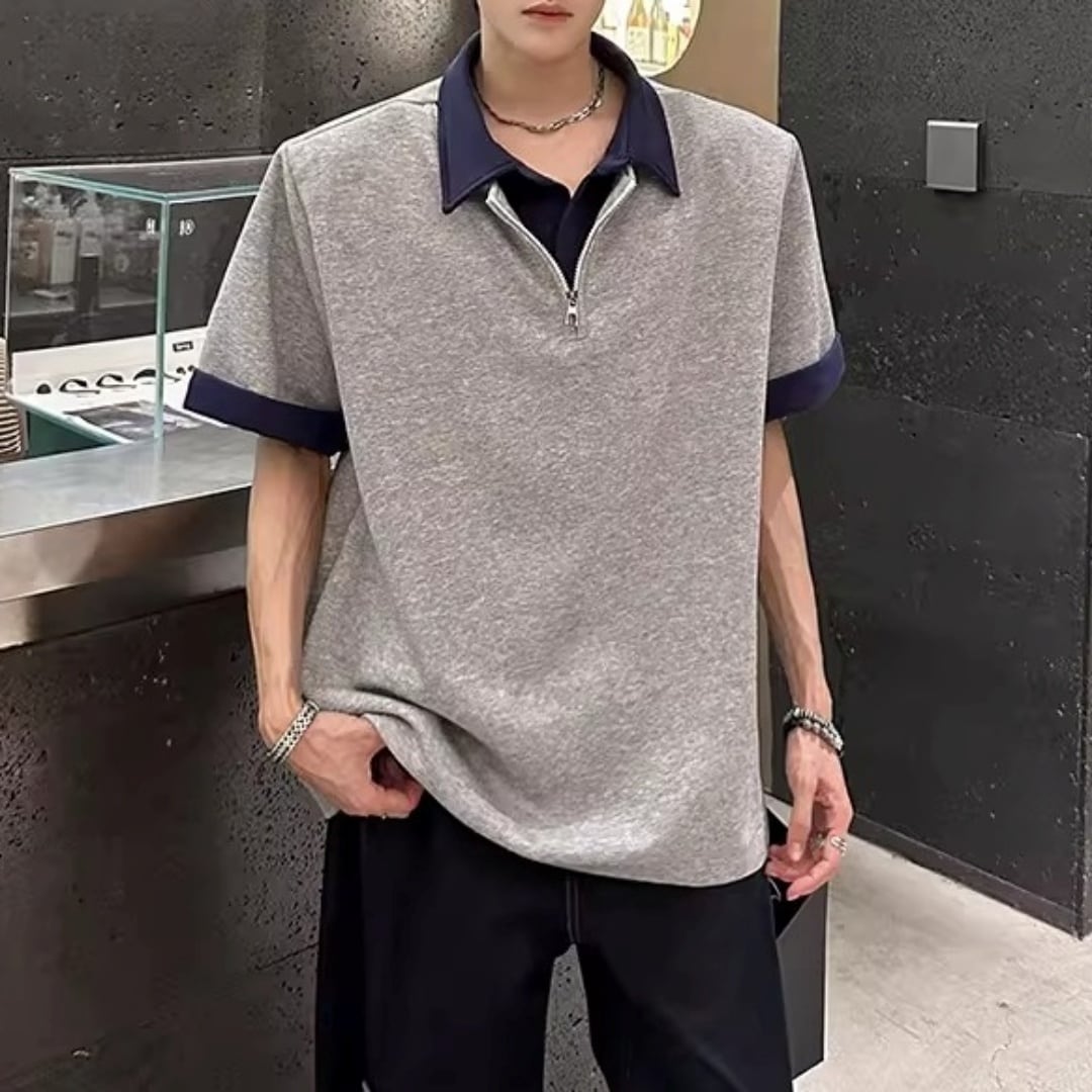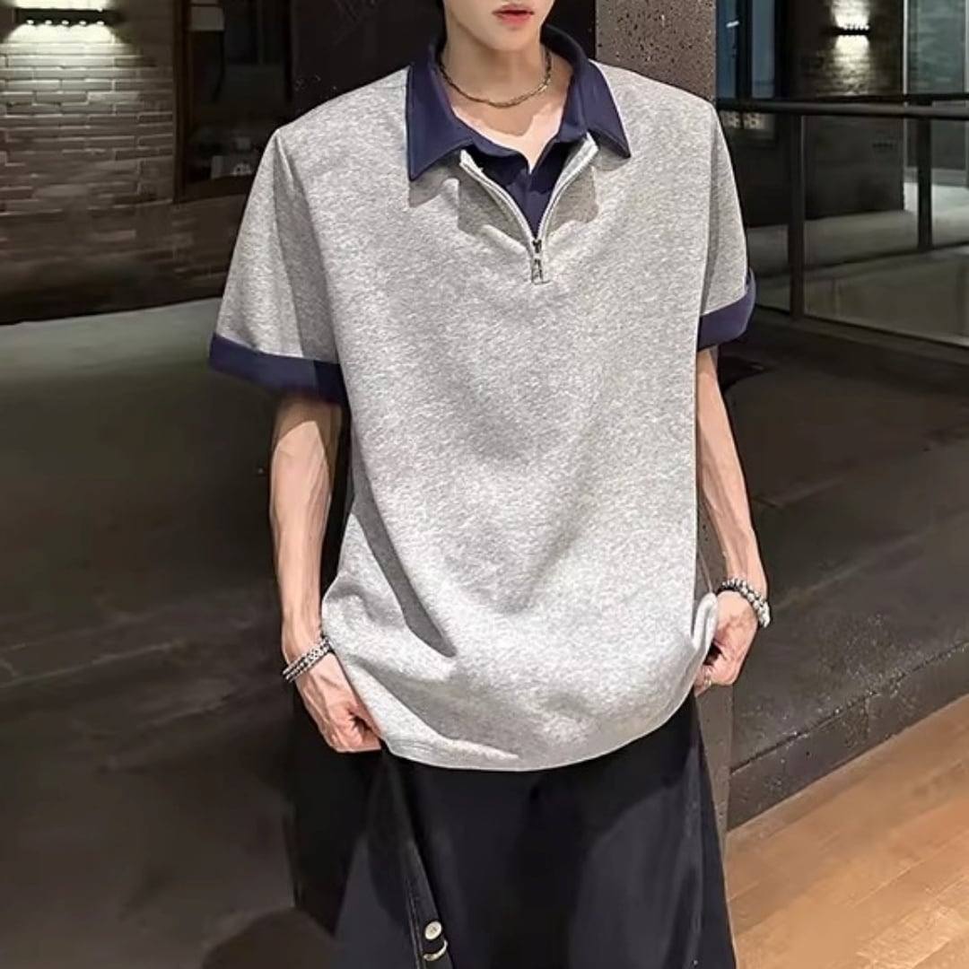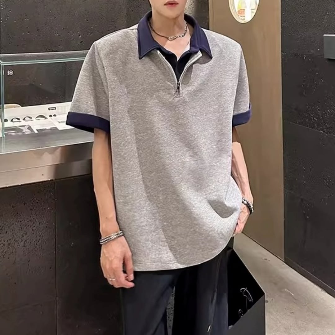 レイヤードカラー ハーフジップルーズポロシャツ 2カラー D12302