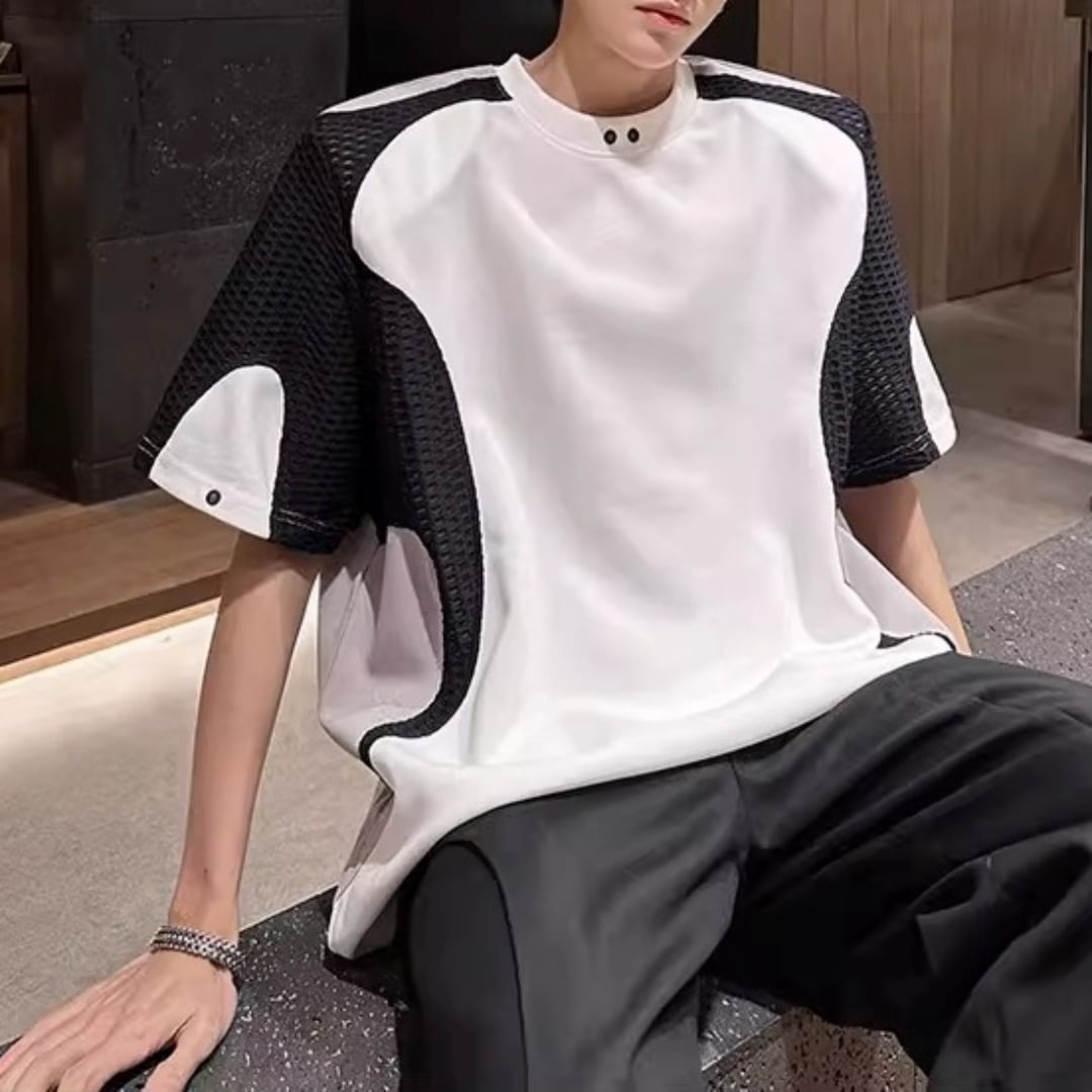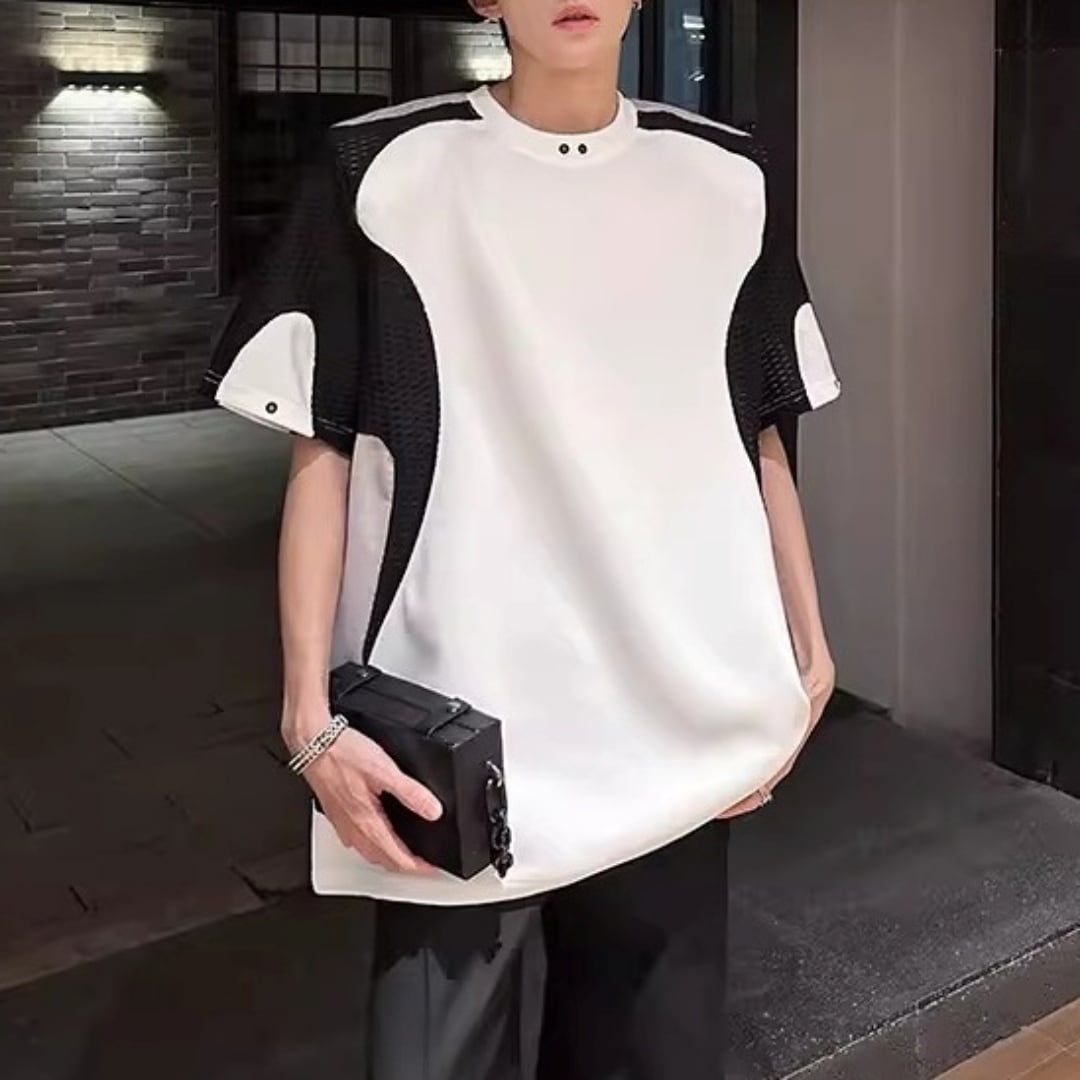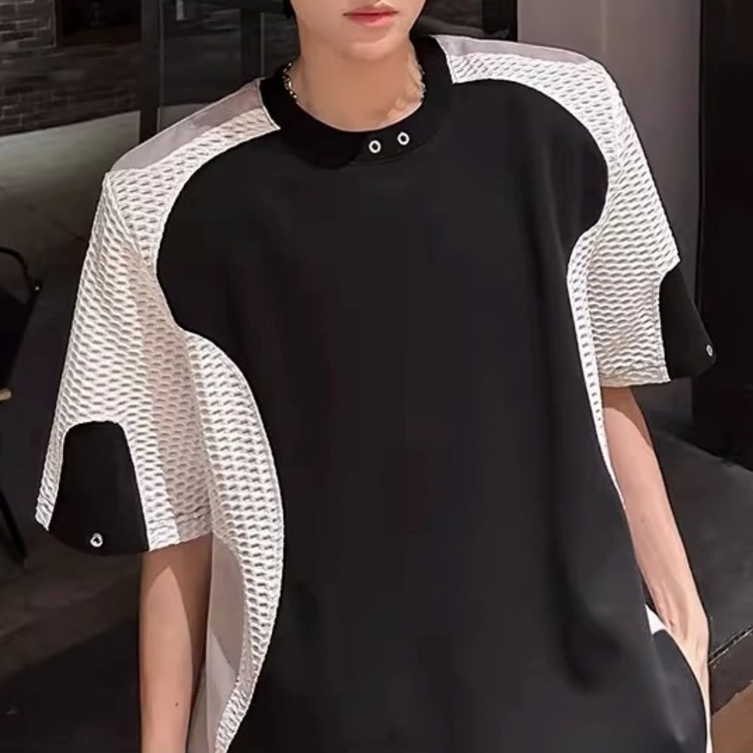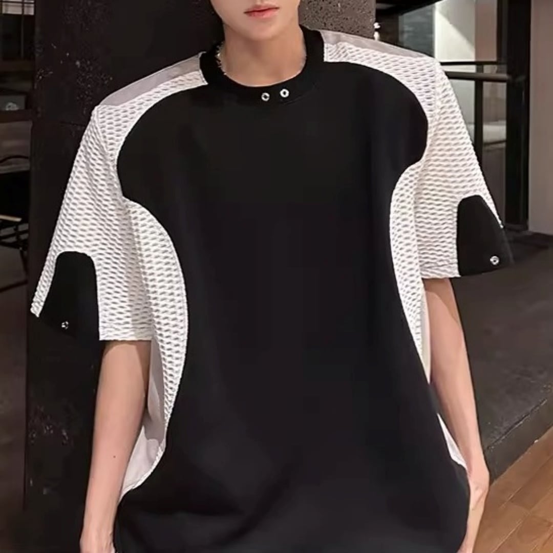カーヴィーライン 異素材コンビTシャツ 2カラー D12305