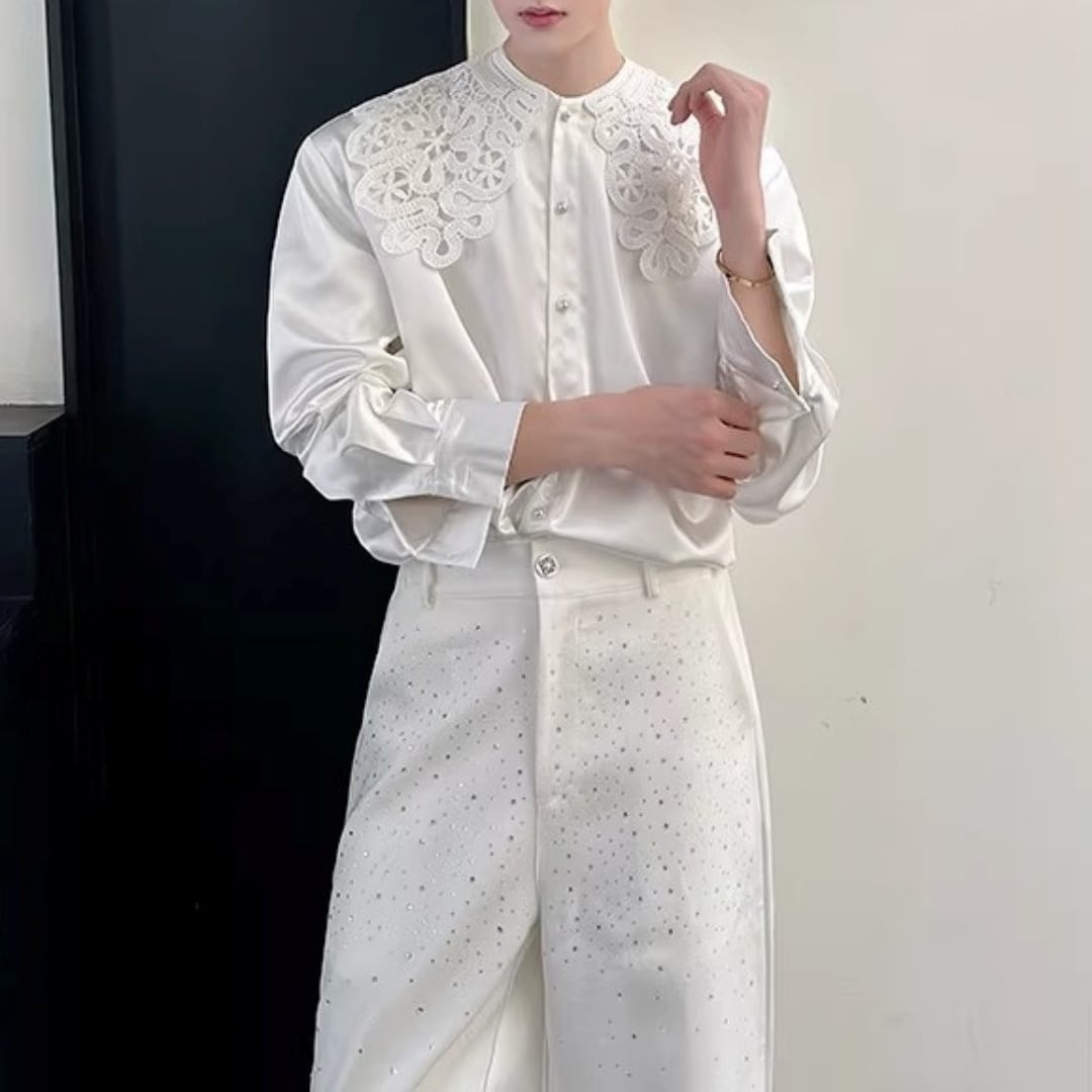 【即納対応商品】ビッグレースカラー ノーブルドレープシャツ D12024