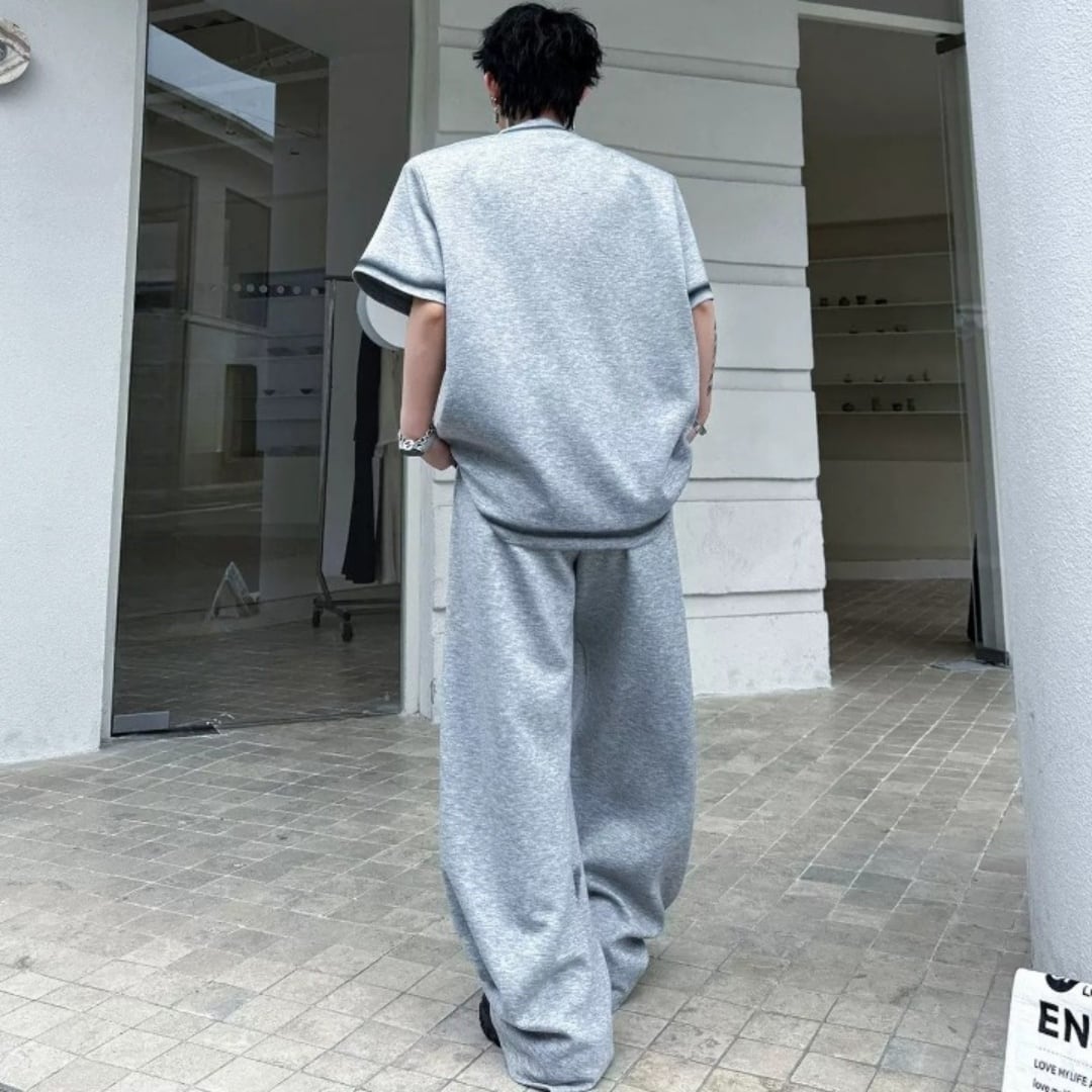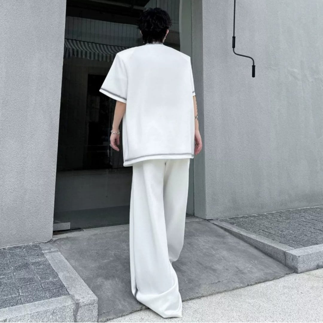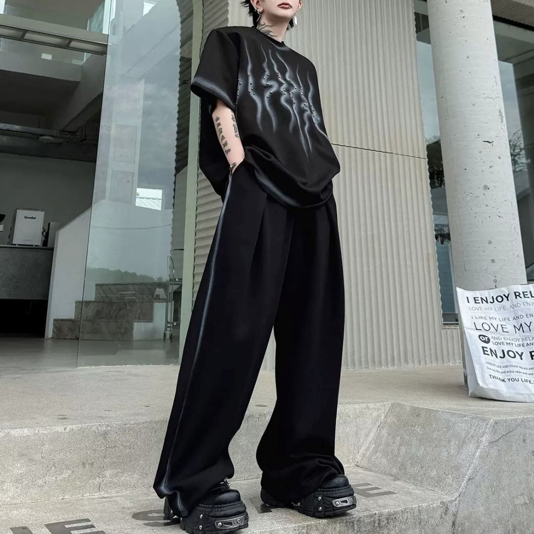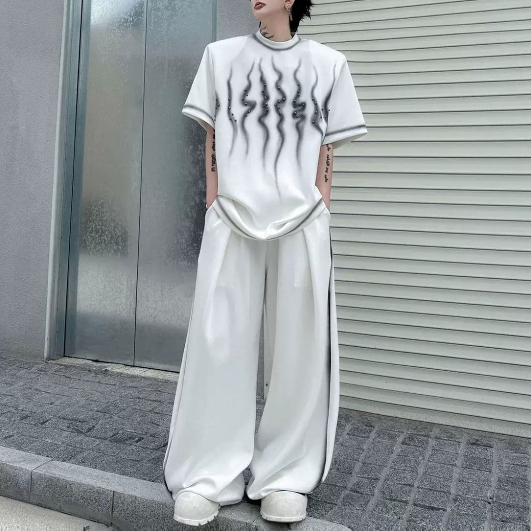 スタッズアクセント スモークプリントTシャツ&ワイドパンツセットアップ 3カラー D12318
