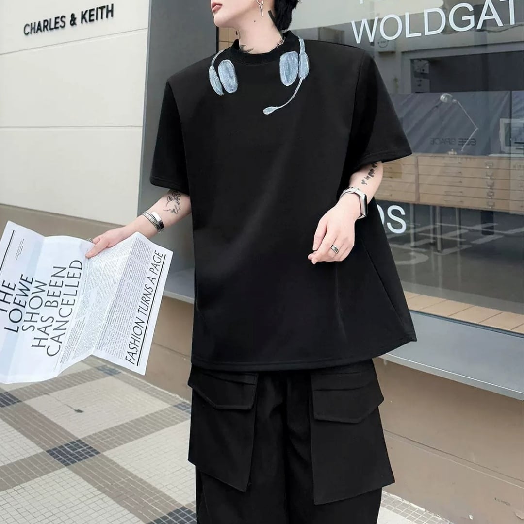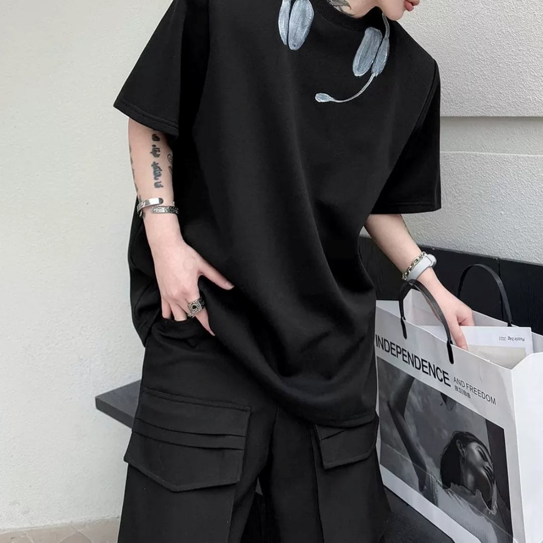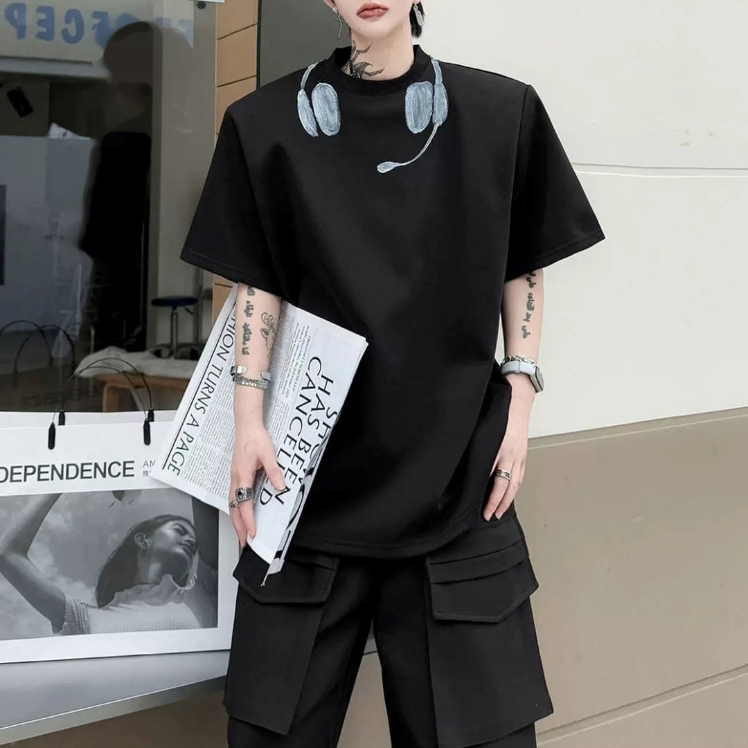 ヘッドホンプリント オーバーサイズTシャツ 2カラー D12320