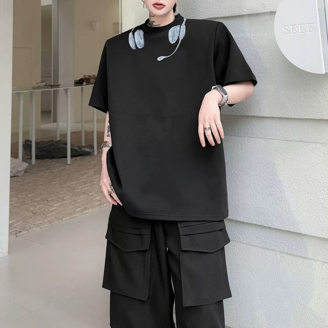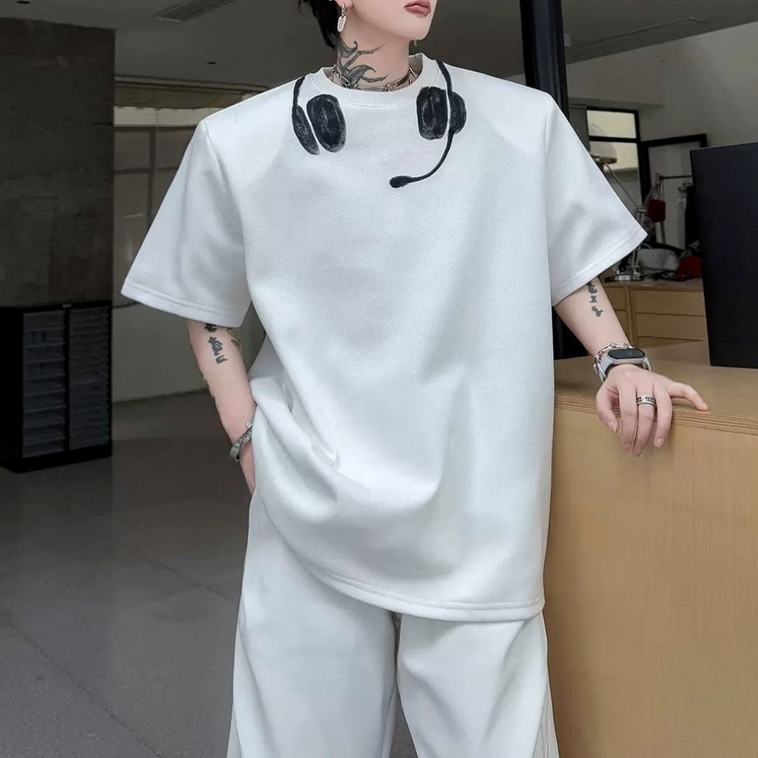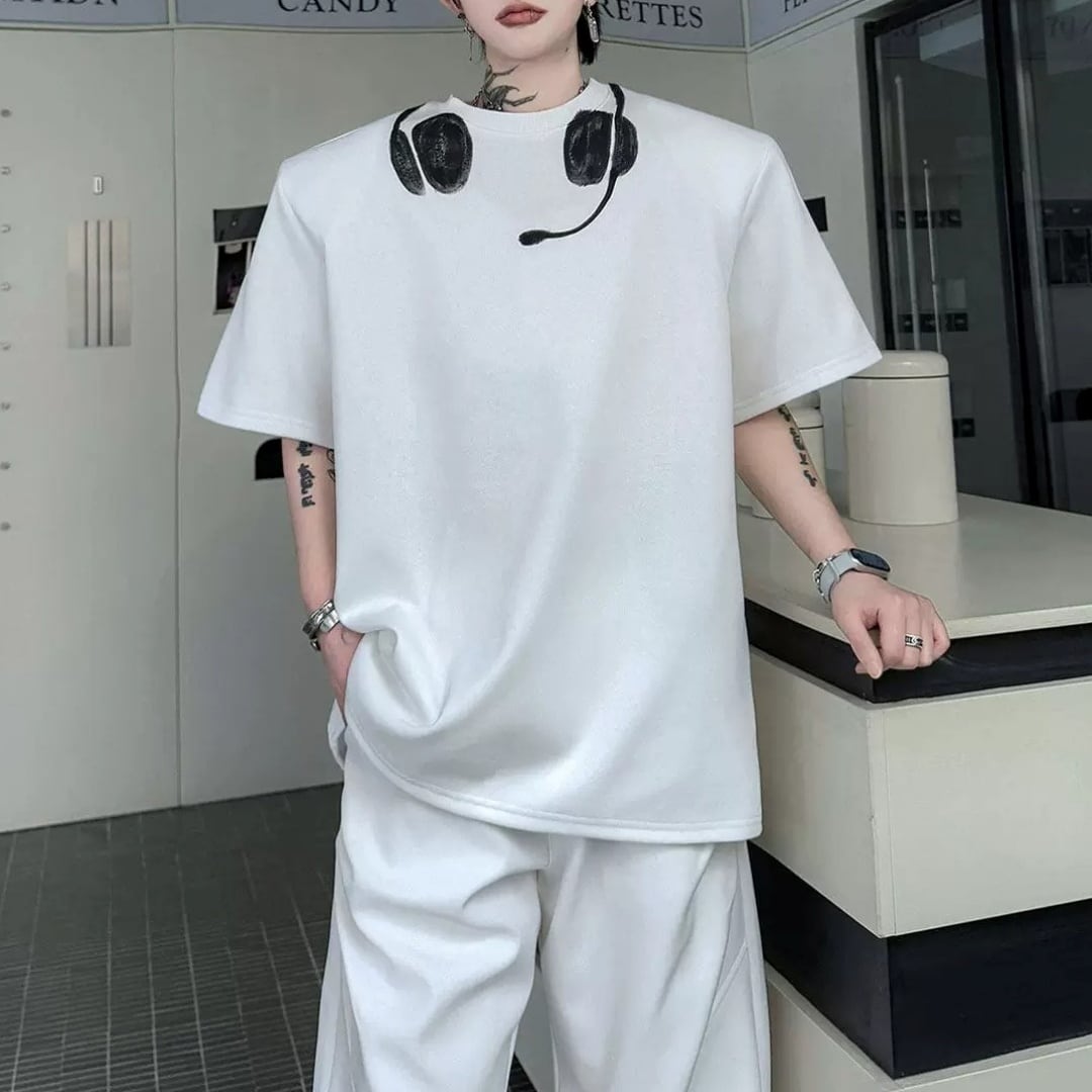ヘッドホンプリント オーバーサイズTシャツ 2カラー D12320