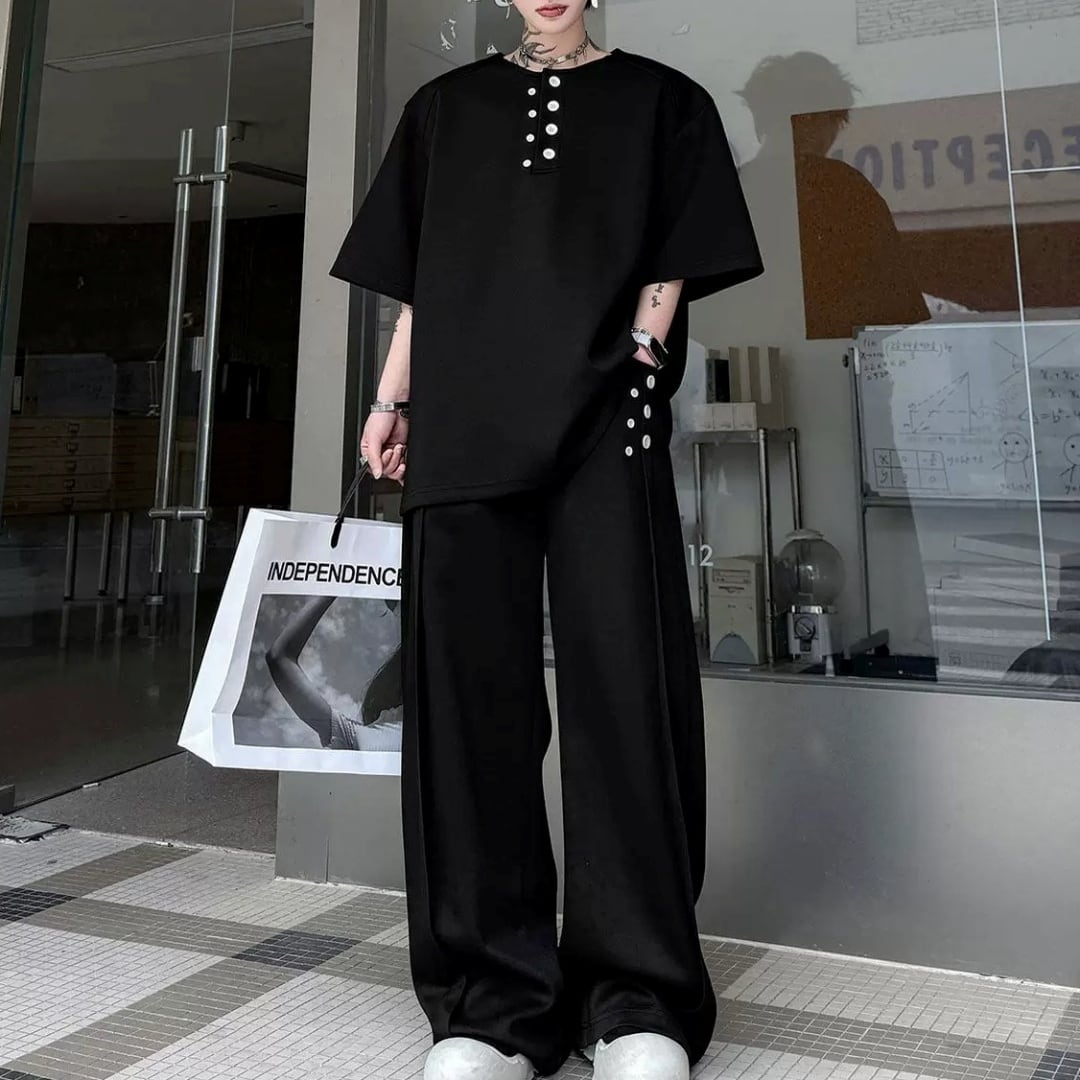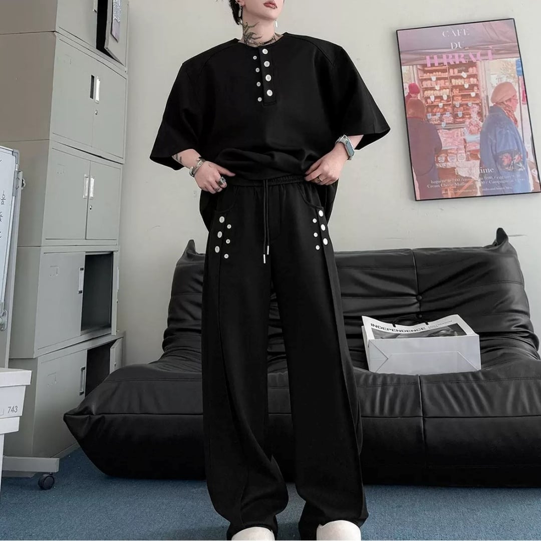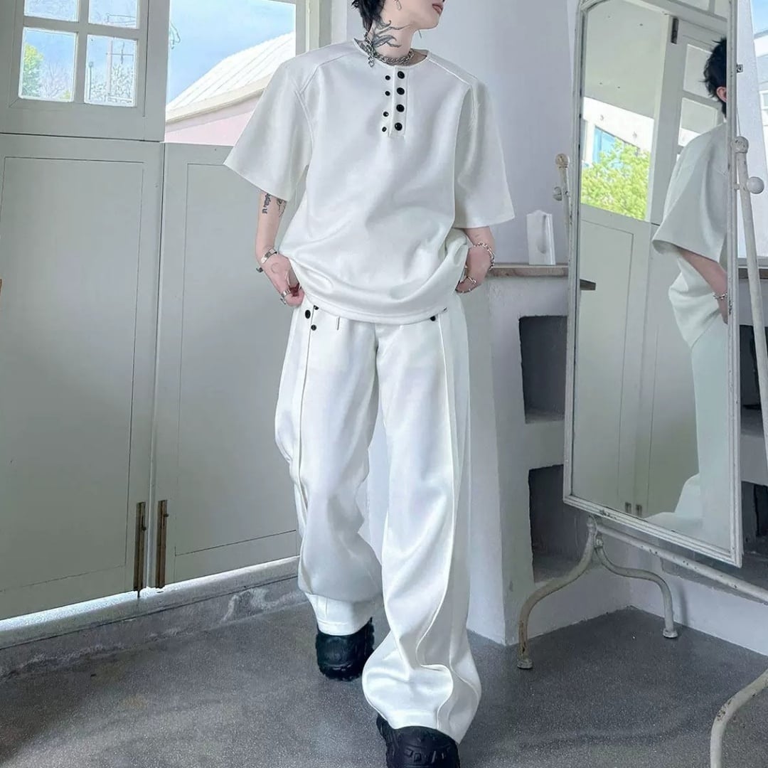 ボタンアクセント ワイドシルエットセットアップ 2カラー D12324