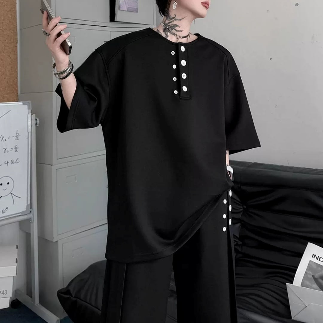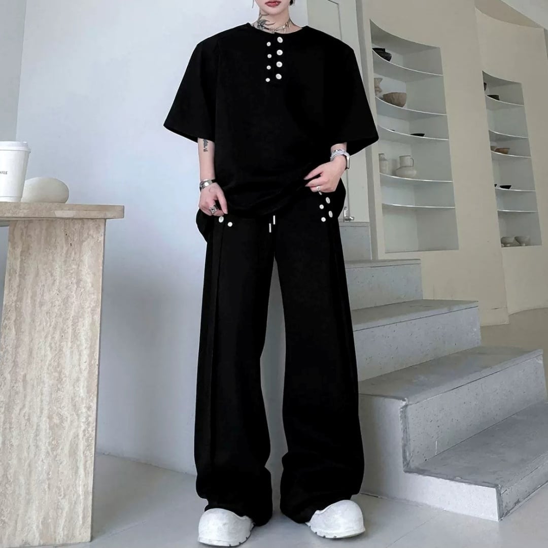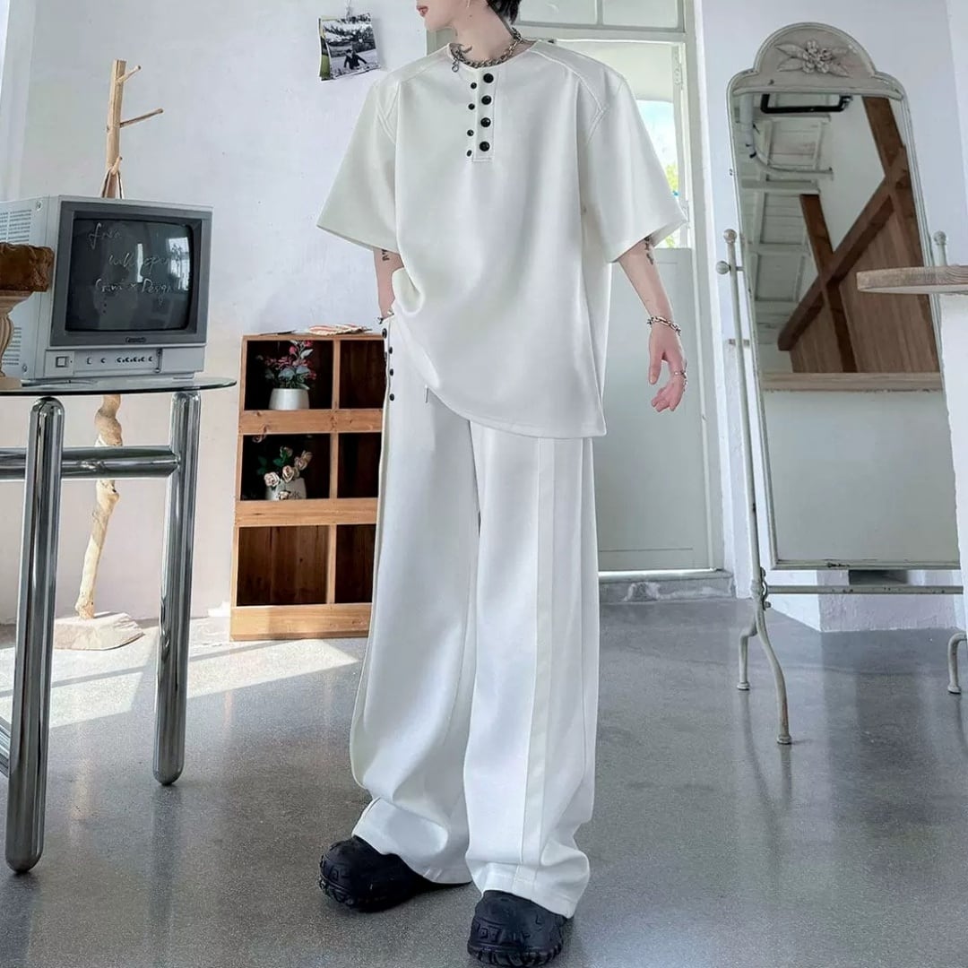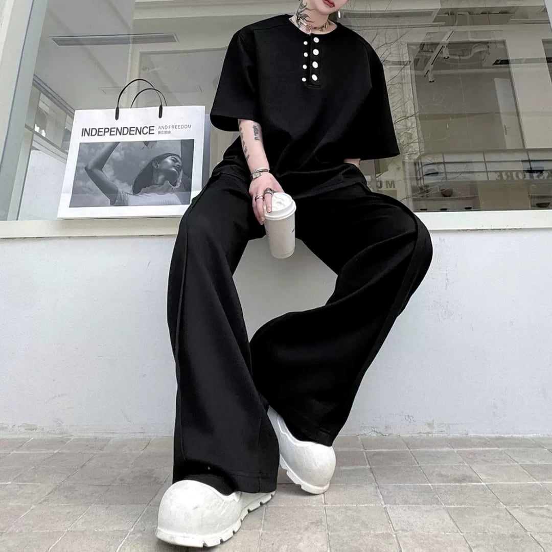 ボタンアクセント ワイドシルエットセットアップ 2カラー D12324