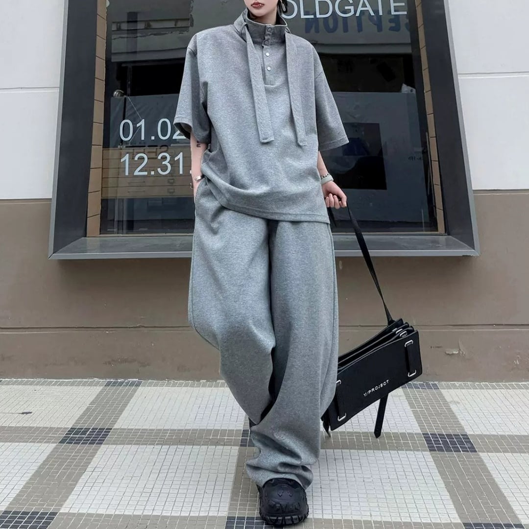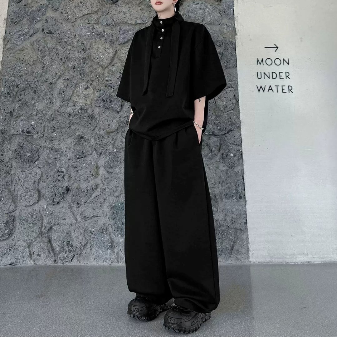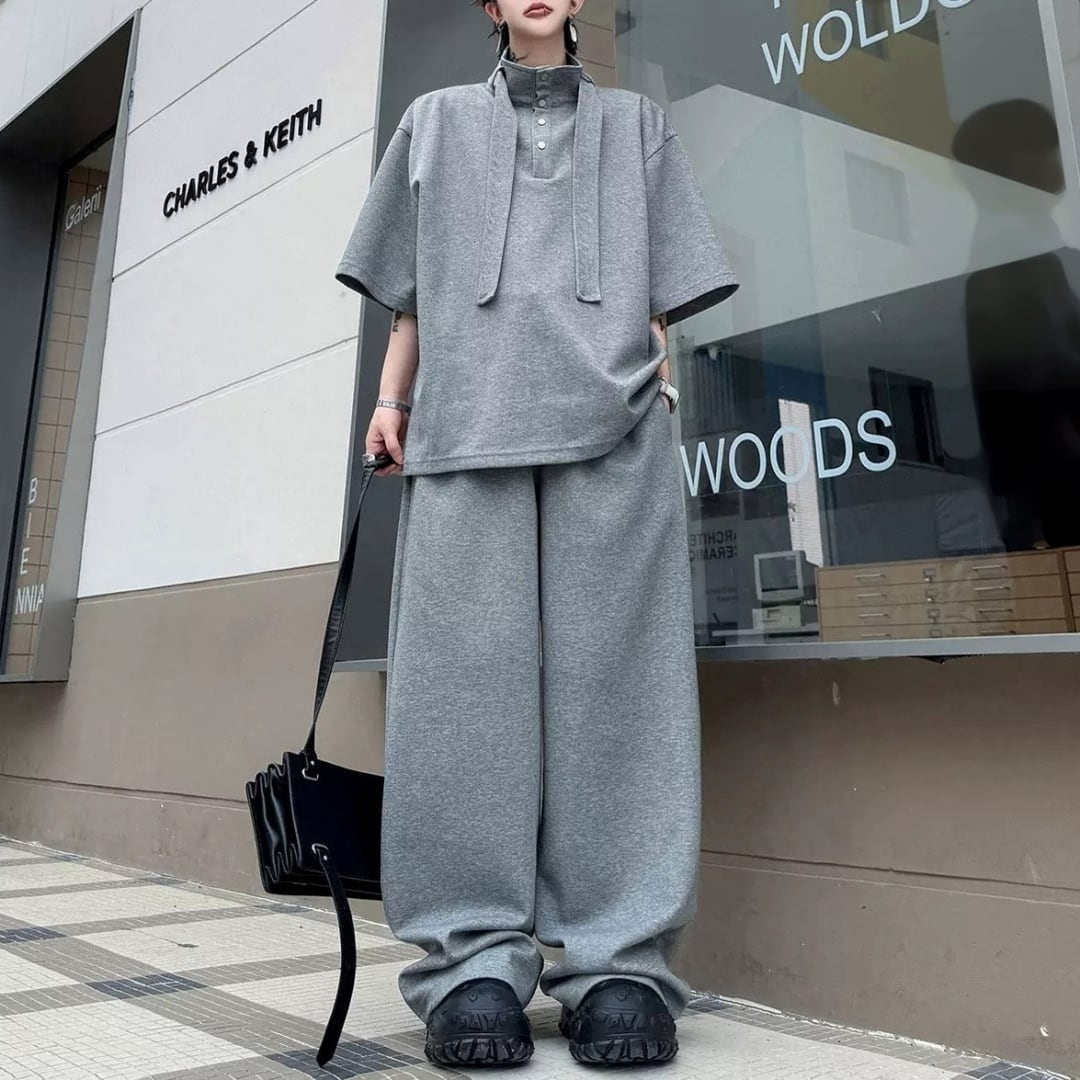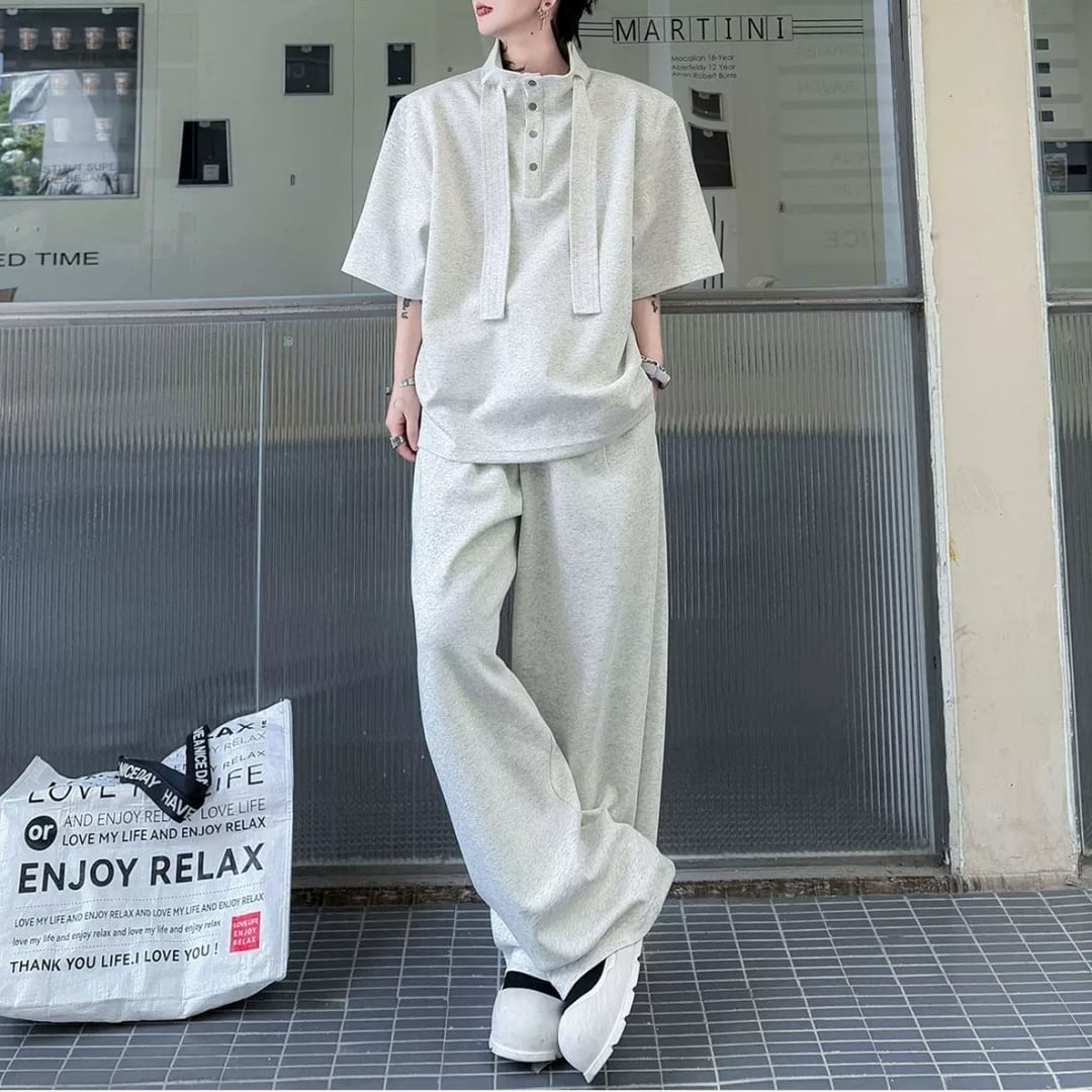 ハイネックボウタイデザイン ハーフスリーブスウェットセットアップ 3カラー D12325