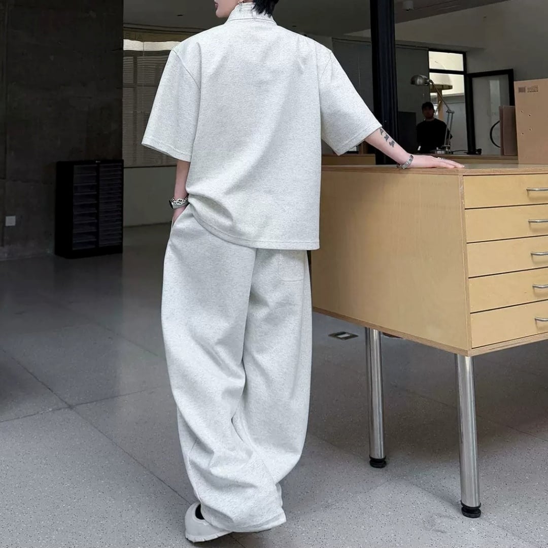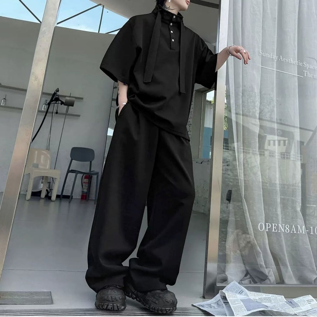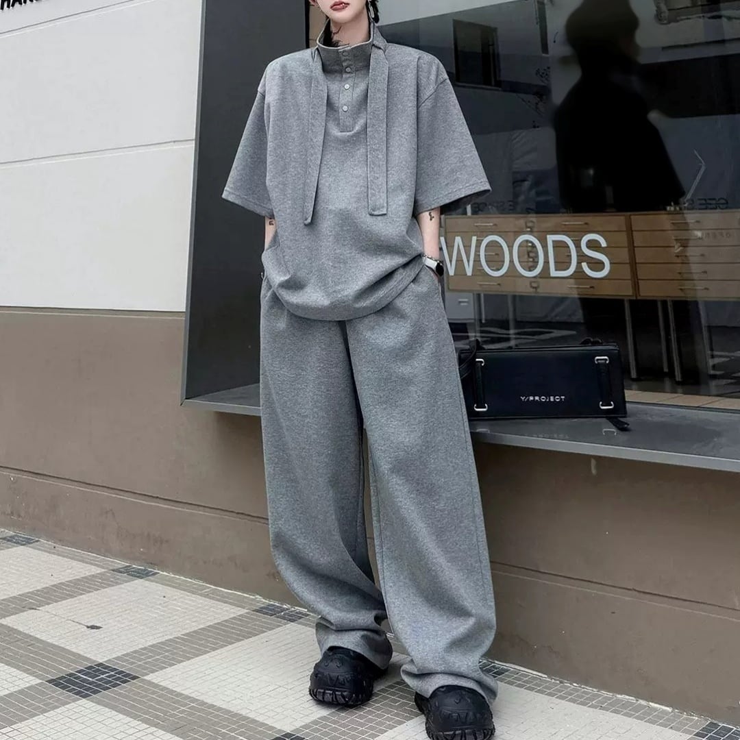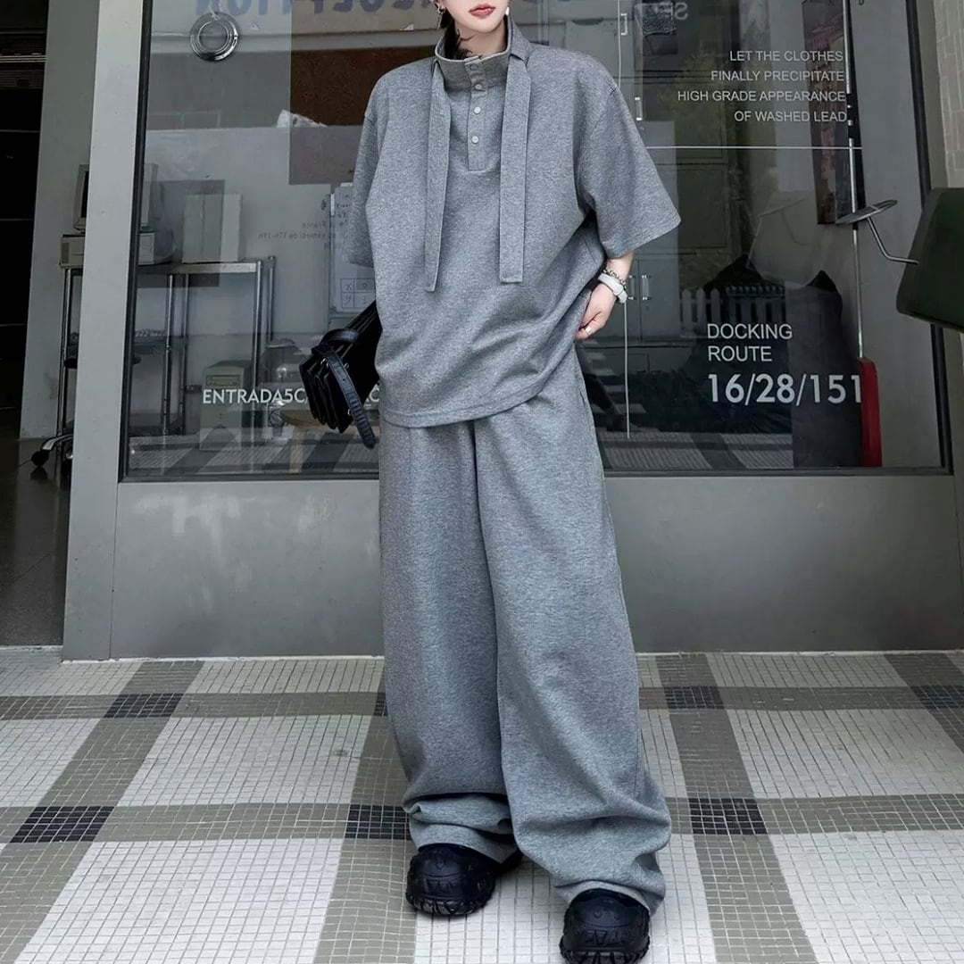 ハイネックボウタイデザイン ハーフスリーブスウェットセットアップ 3カラー D12325