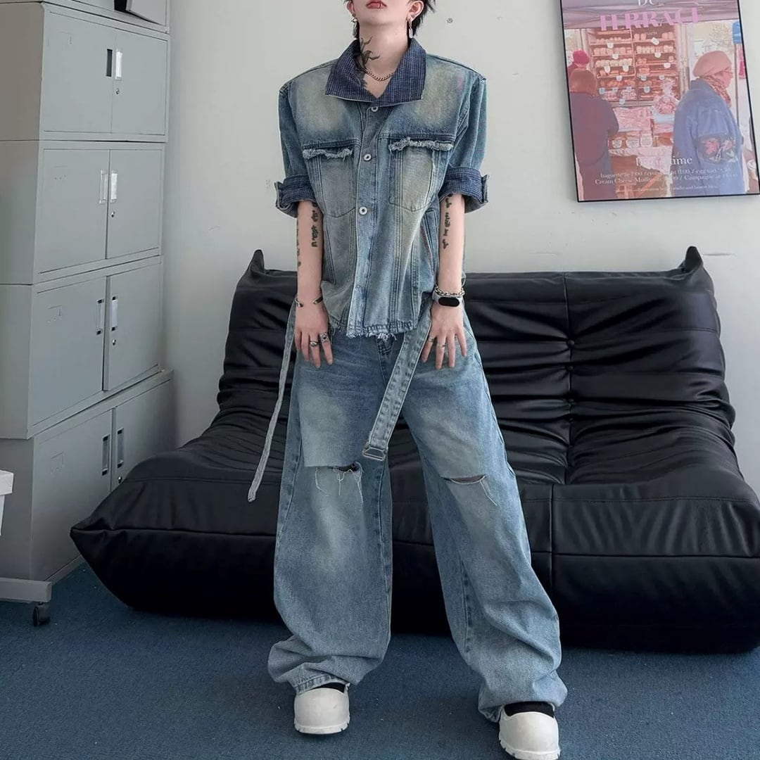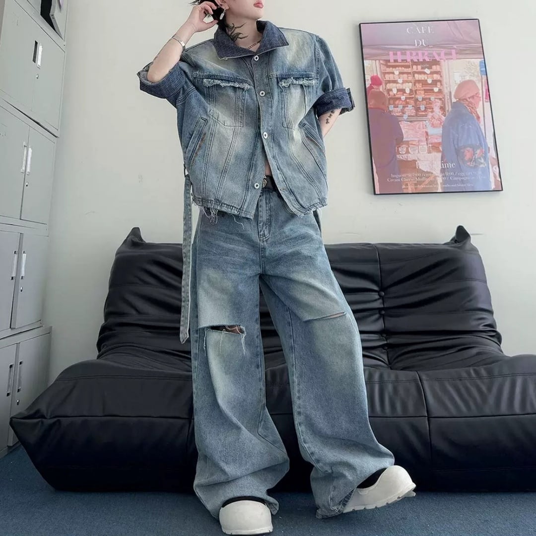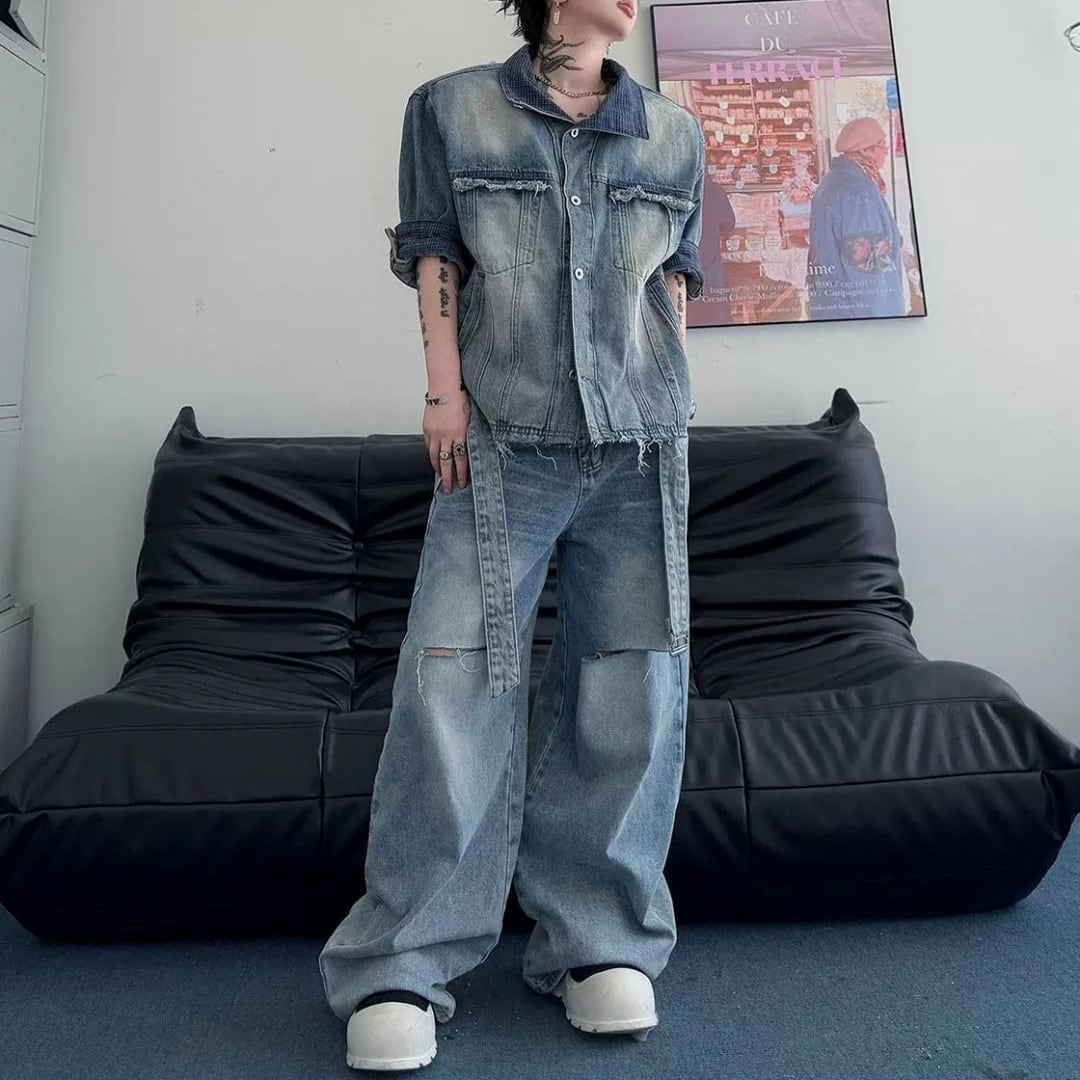 ヴィンテージライク ベルテッドデニムセットアップ D12326