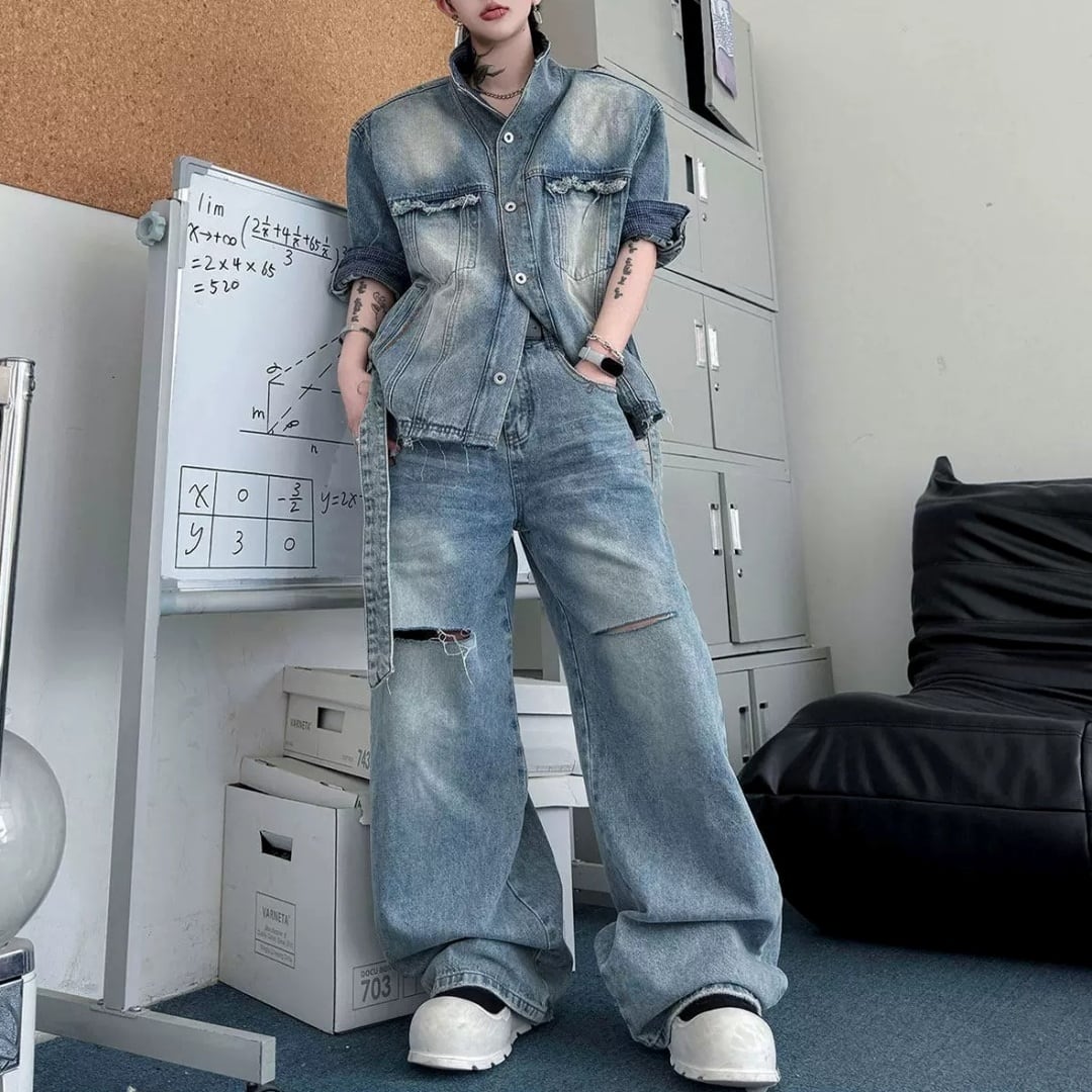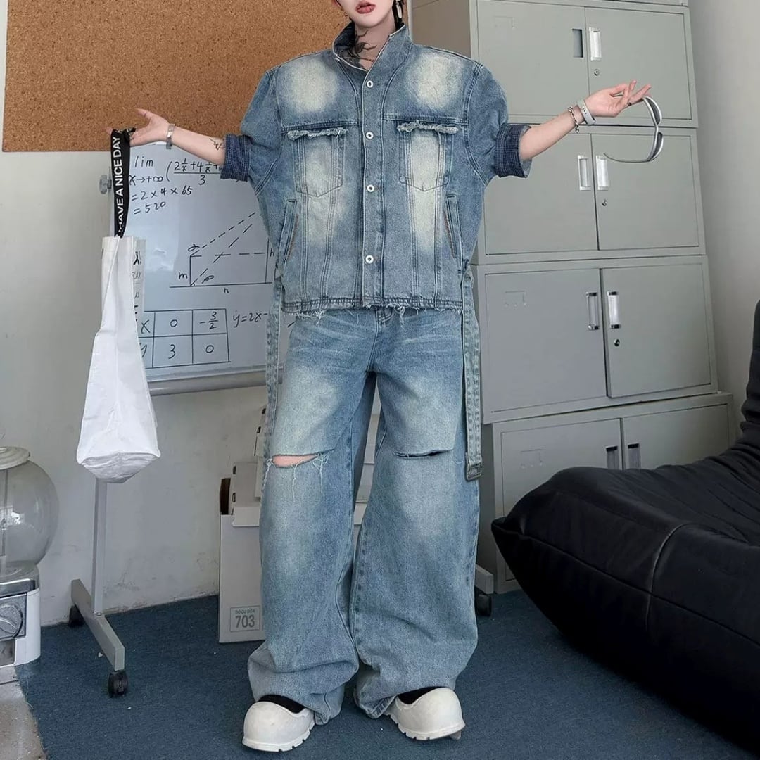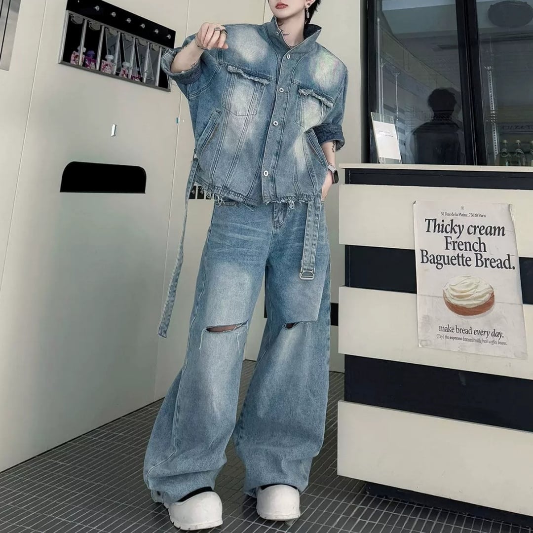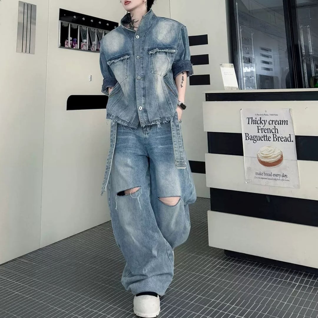 ヴィンテージライク ベルテッドデニムセットアップ D12326