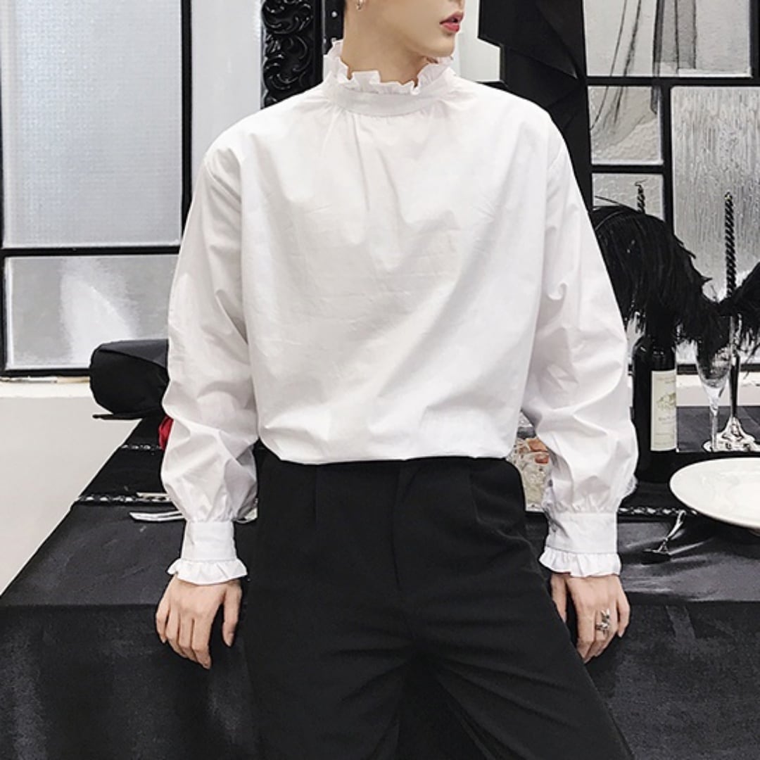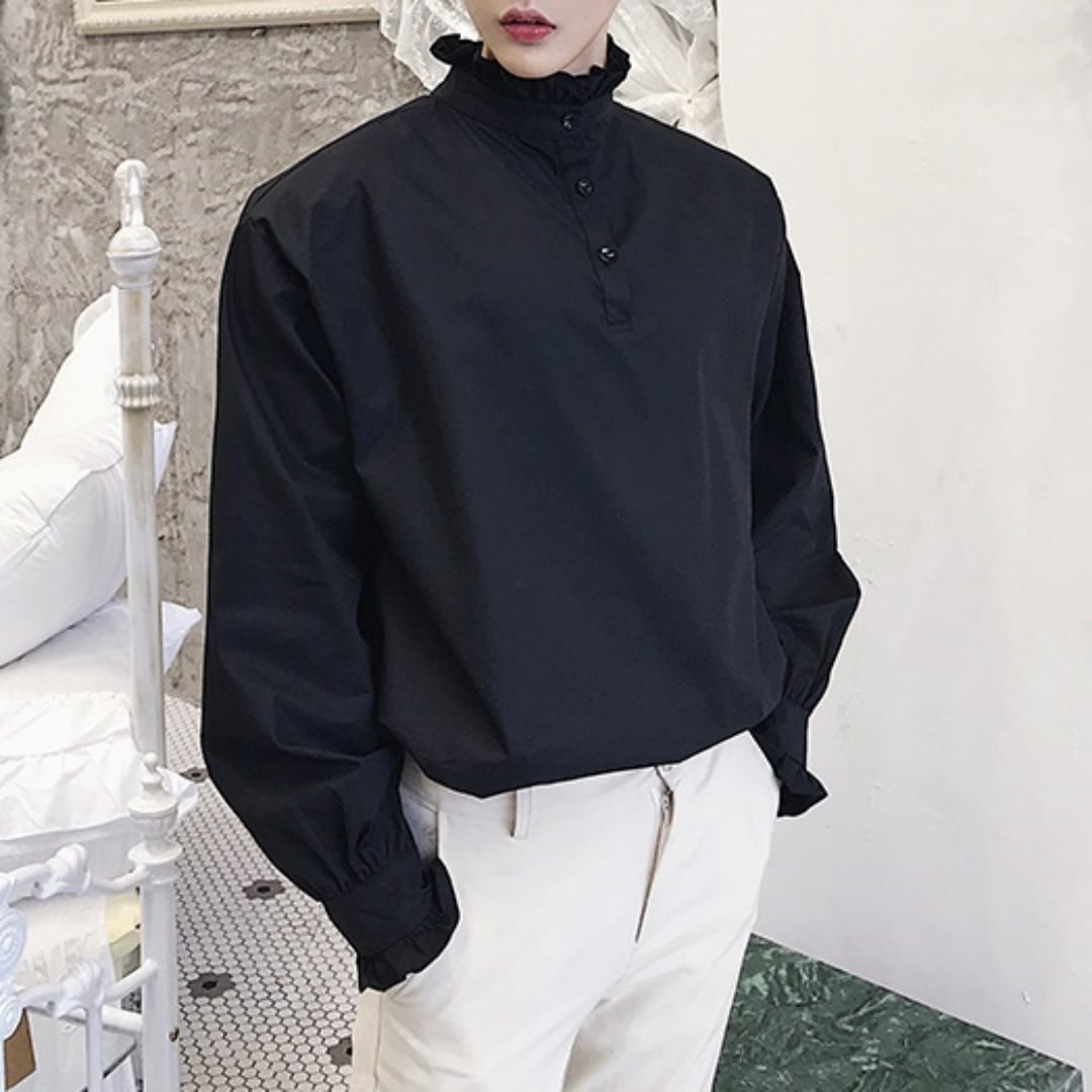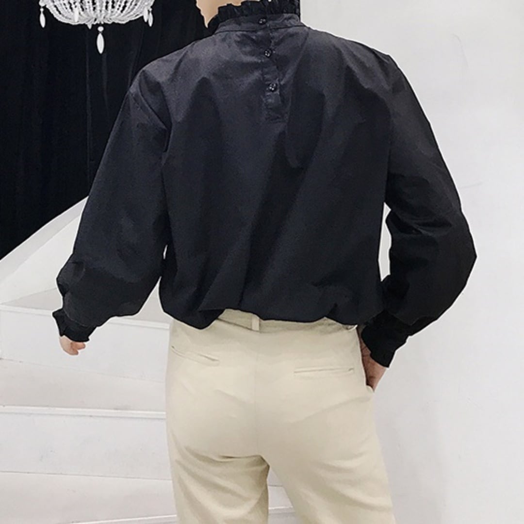 フリルスタンドカラー 長袖プルオーバーシャツ 2カラー D10062