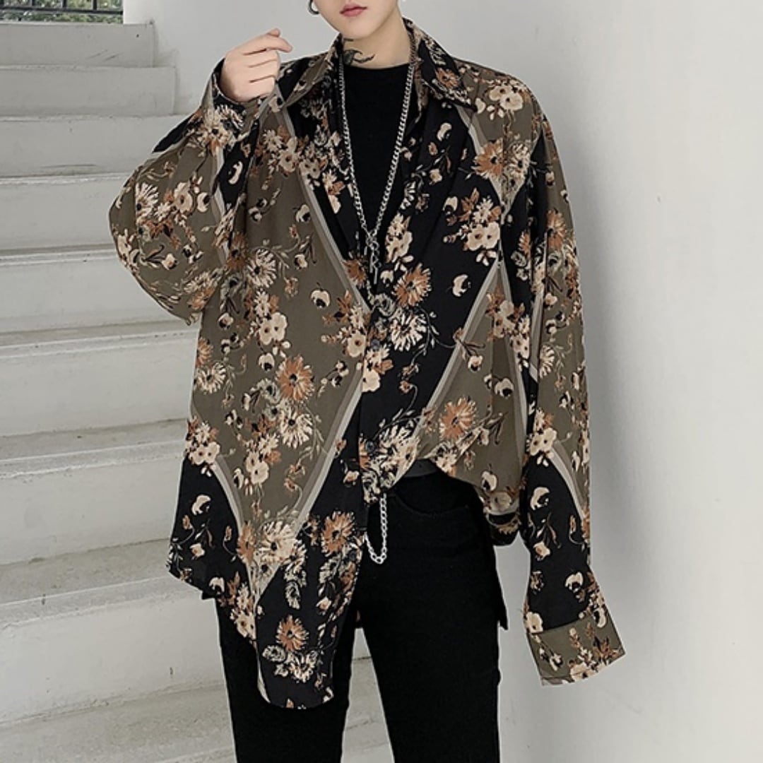 レトロフラワー ルーズ長袖シャツ D10070