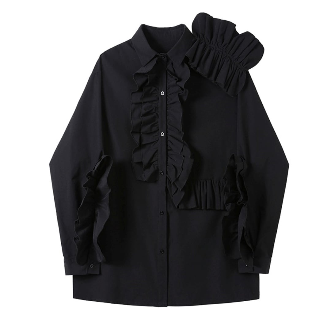 エレガントフリル 長袖フェミニンシャツ 2カラー D10086