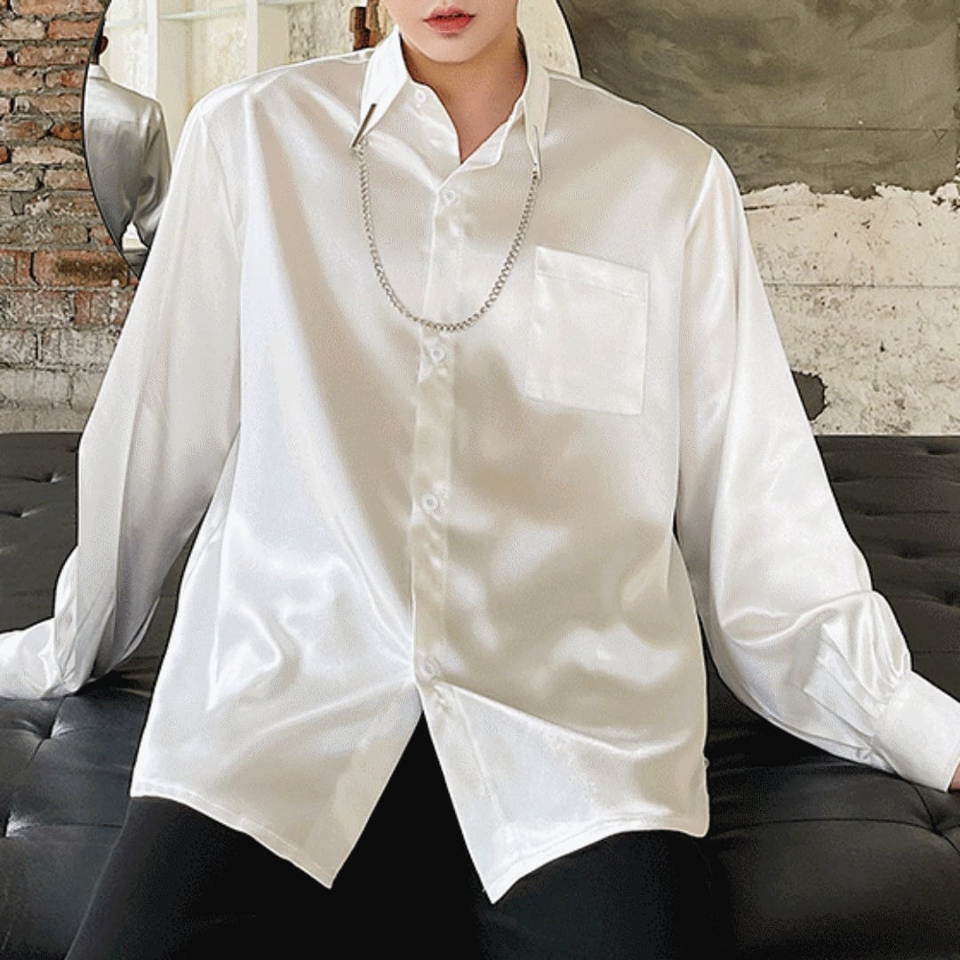 チェーン付き グロッシー長袖シャツ 2カラー D10095