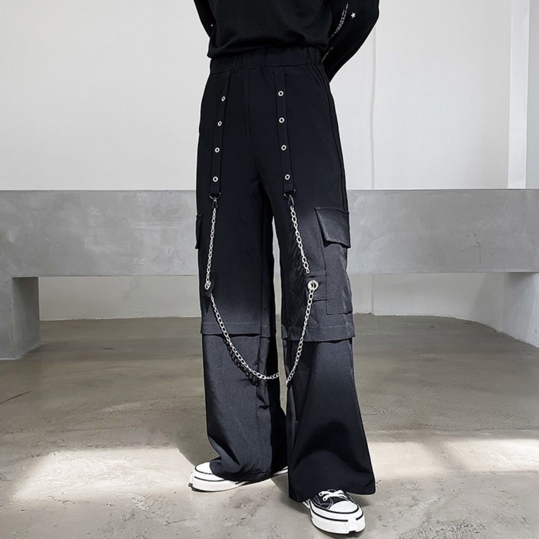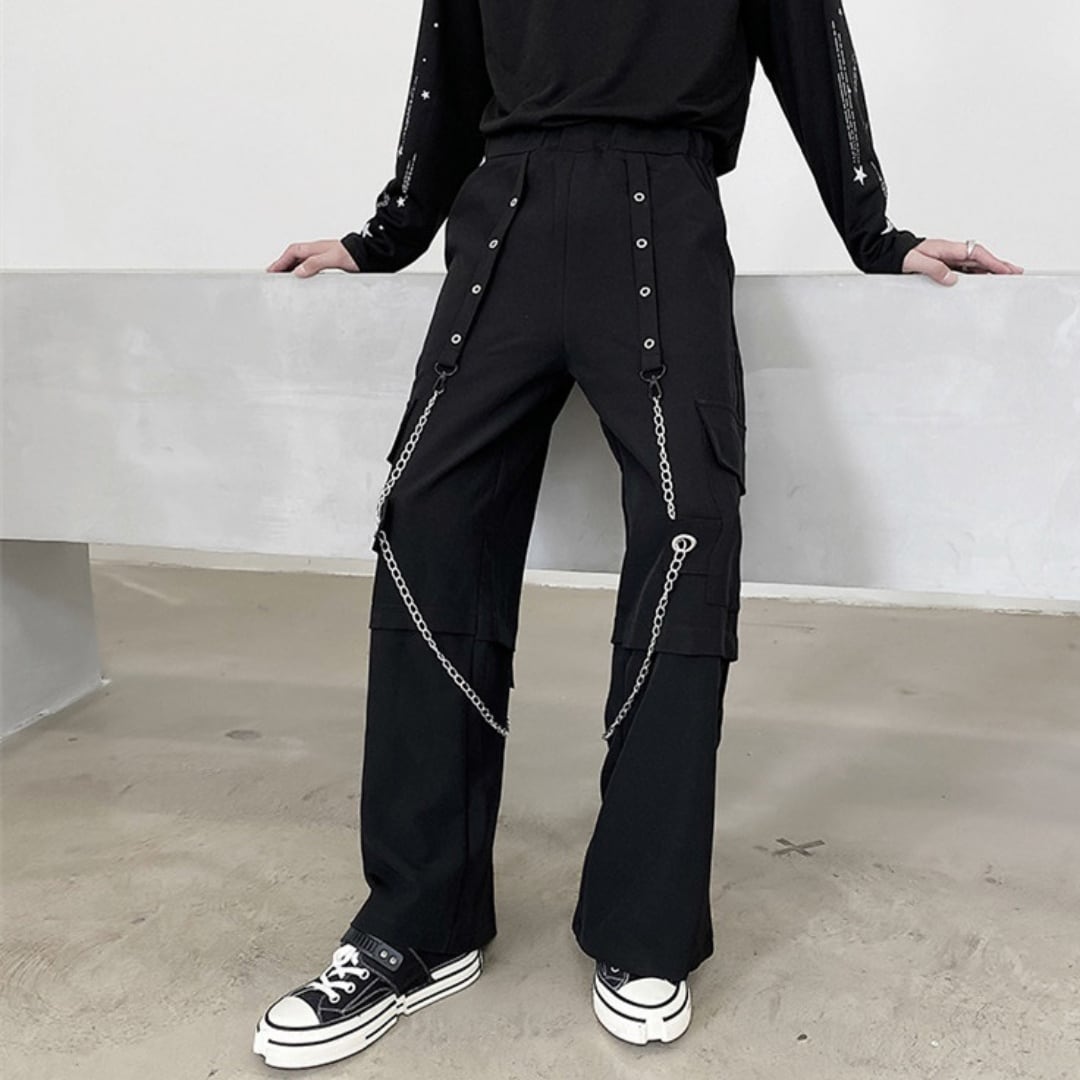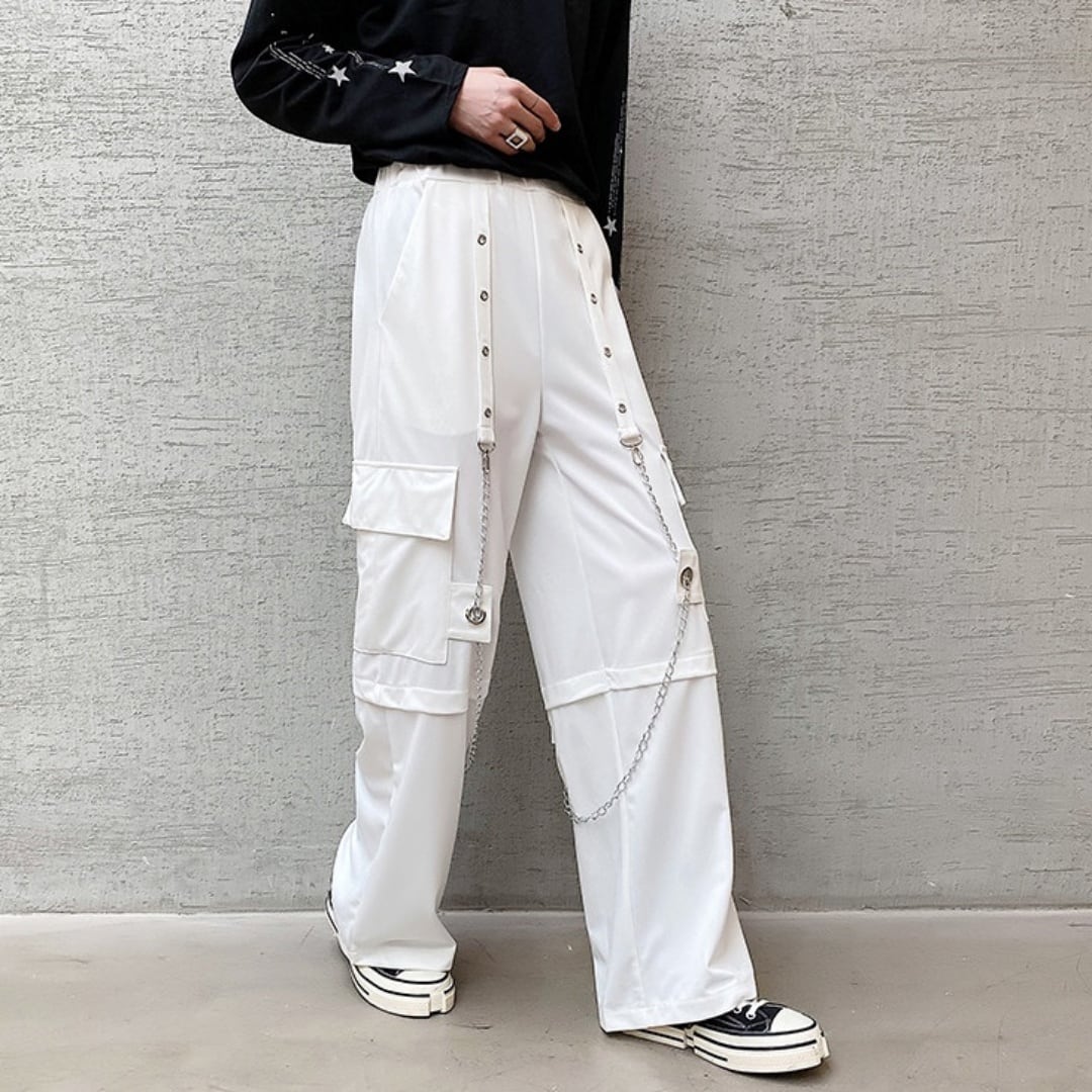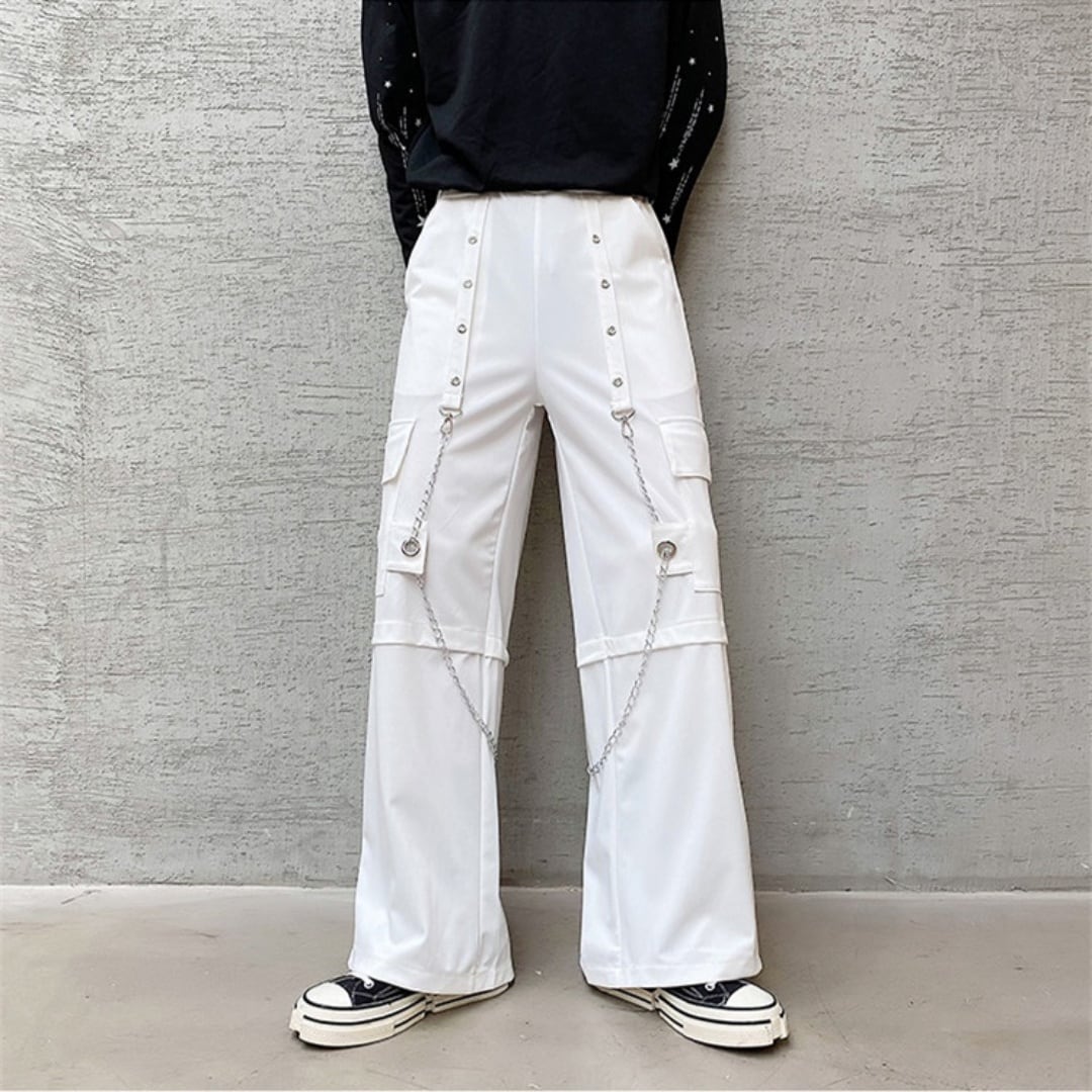 チェーン装飾 ルーズワイドカーゴパンツ 2カラー D10167