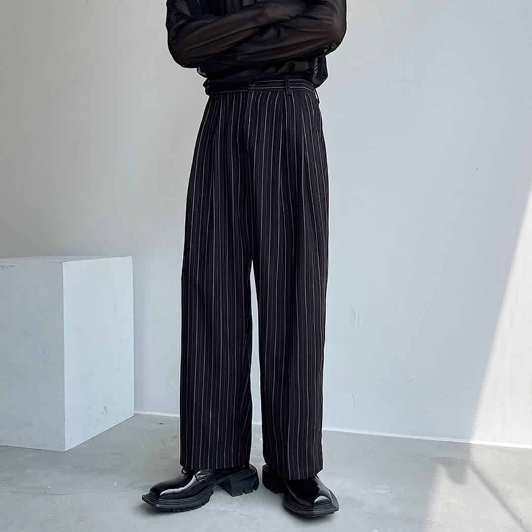 レトロストライプ柄 ワイドレッグパンツ D10193