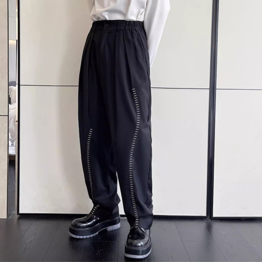 アシンメトリー刺繍 ストレートルーズパンツ D10207