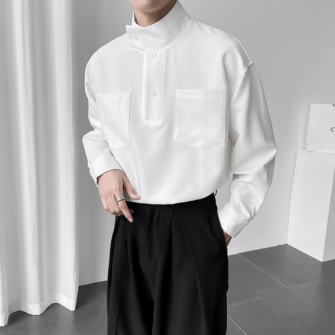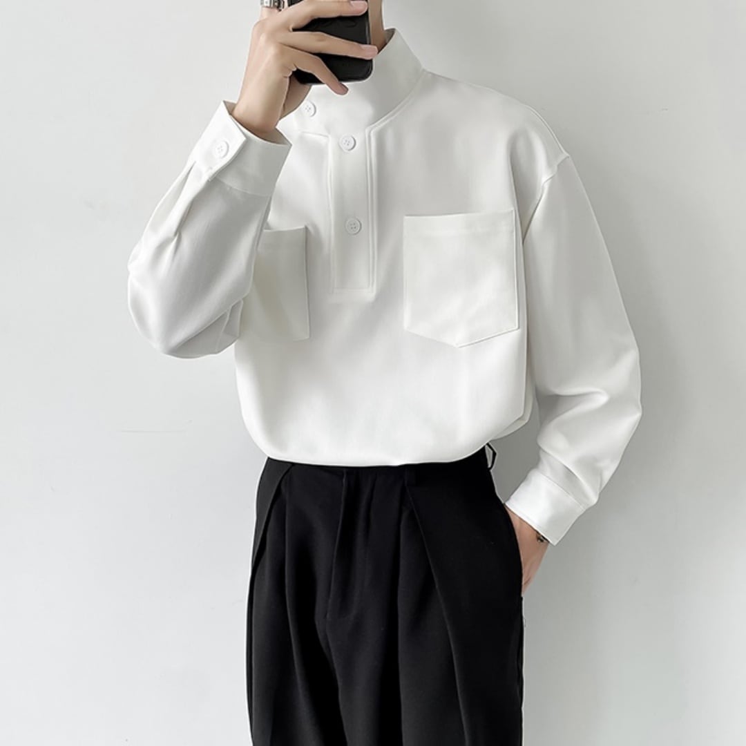 ハイネック 長袖プルオーバーシャツ 2カラー D10337