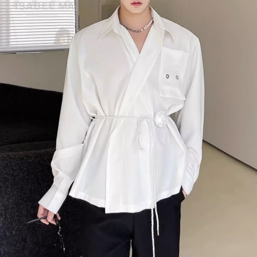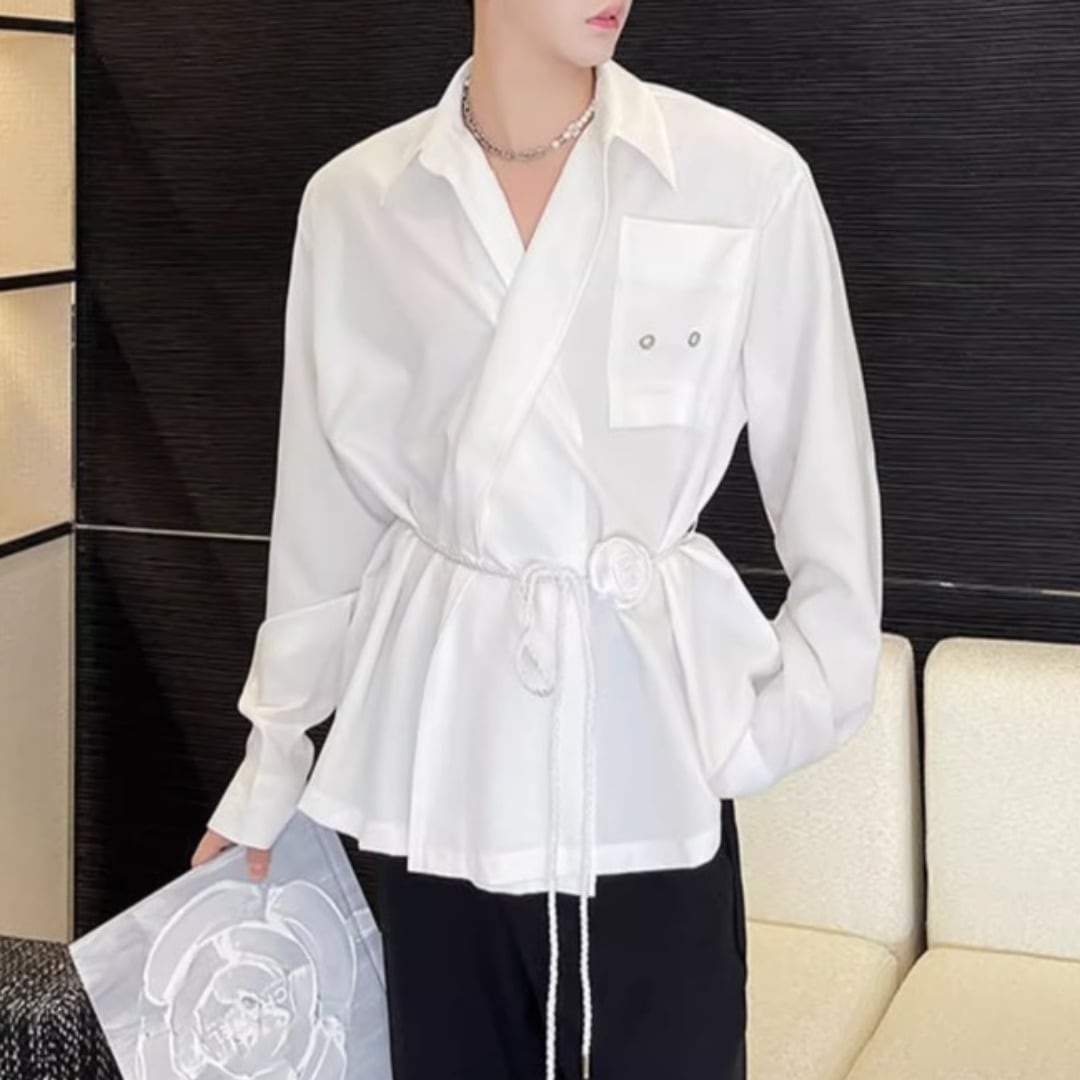 フラワーコード付き カシュクールデザインシャツ 2カラー D10349
