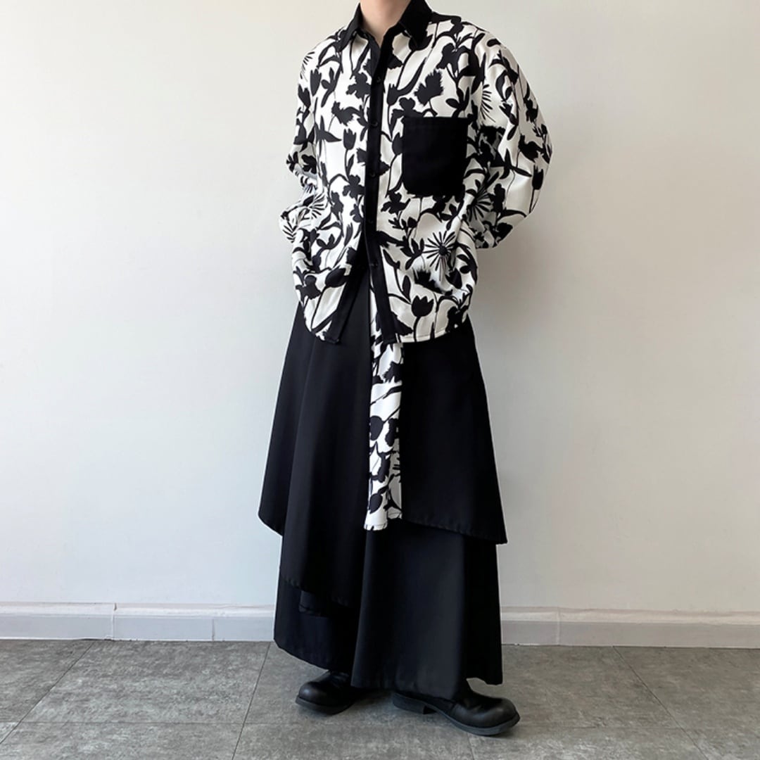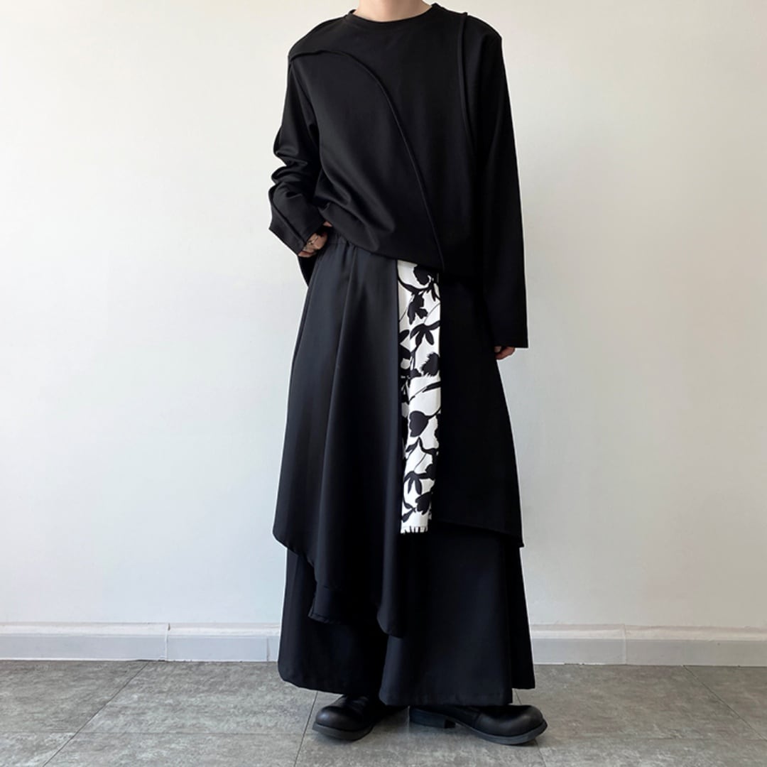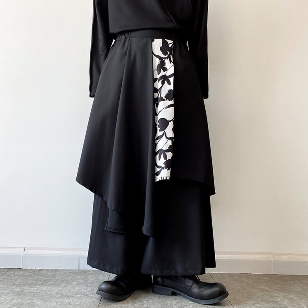 花柄ステッチ イレギュラーワイドパンツ D10366