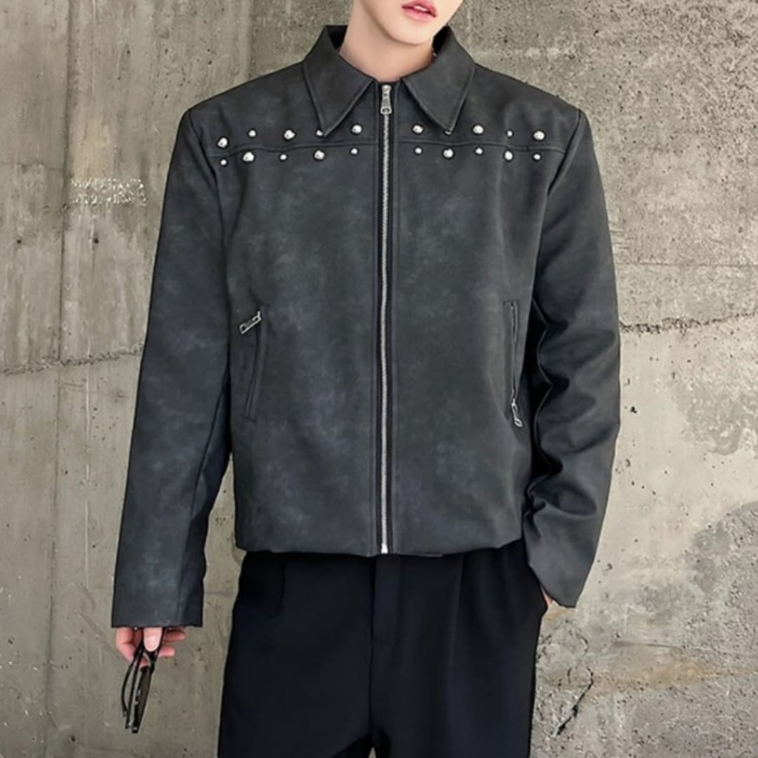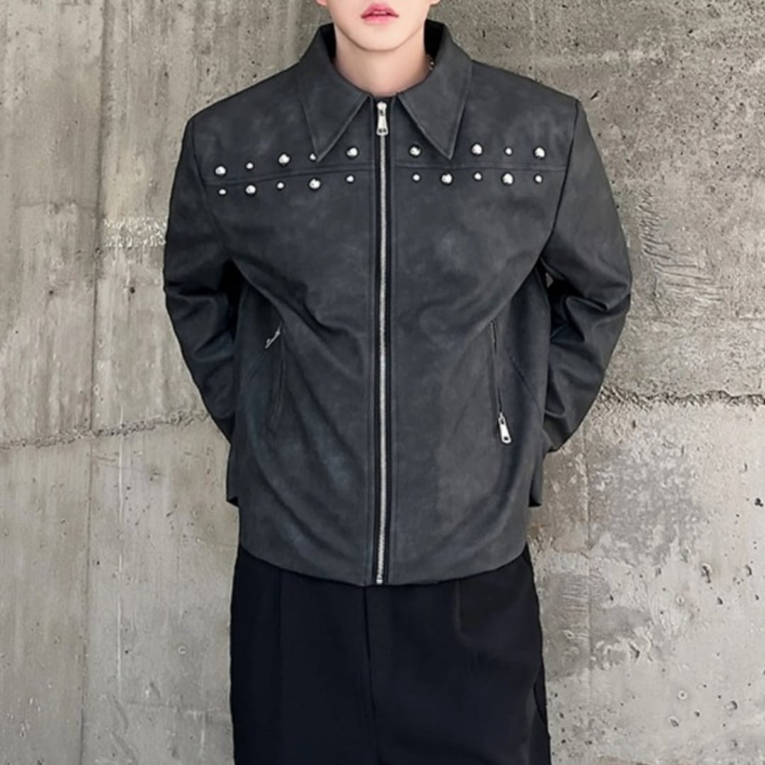 フェイクレザー スタッズショートジャケット 2カラー D10380