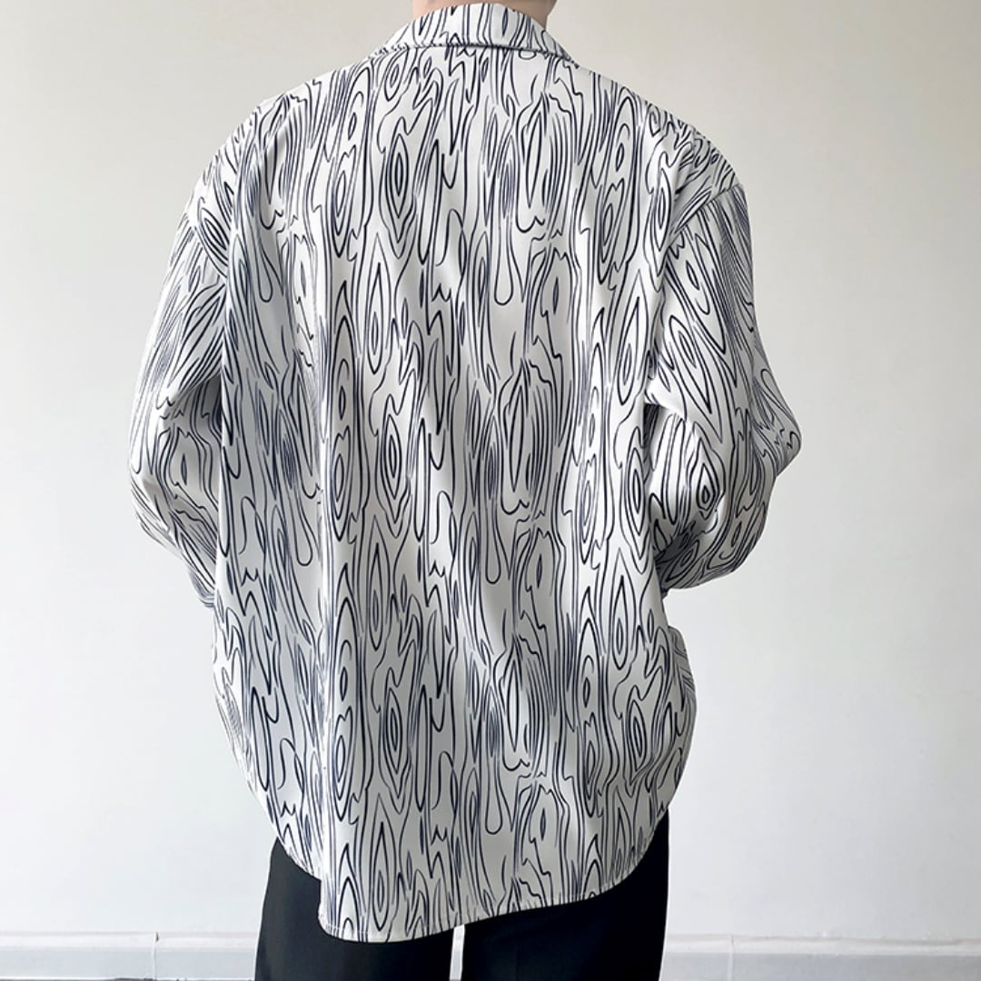 リップルプリント スーツカラー長袖シャツ 2カラー D10385