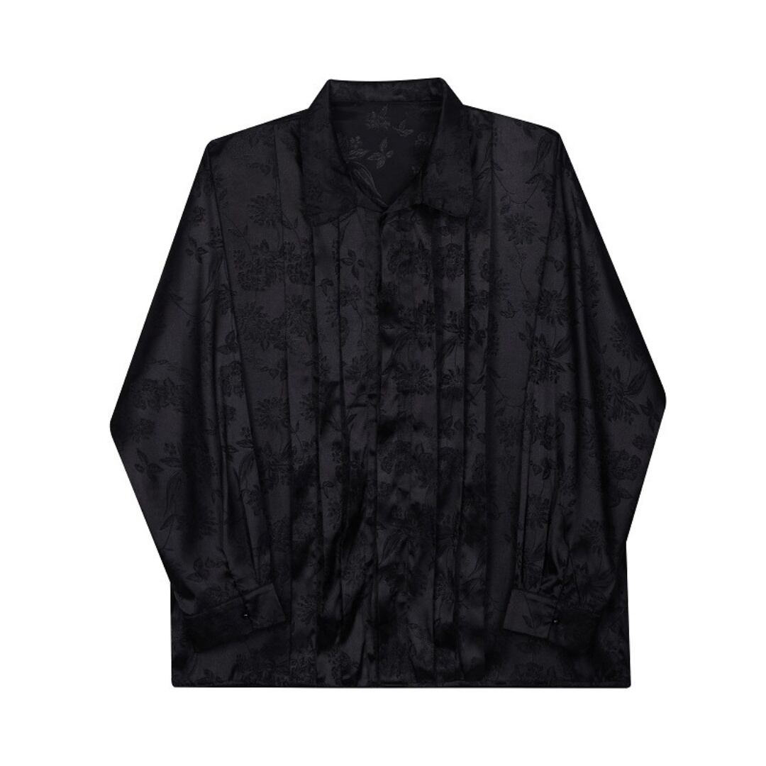 エレガント ジャガードプリーツ長袖シャツ 2カラー D10398