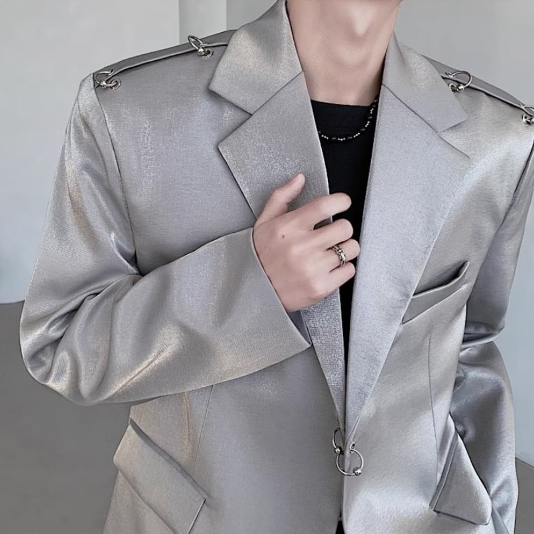 リベットリング装飾 シャイニージャケット 2カラー D10675