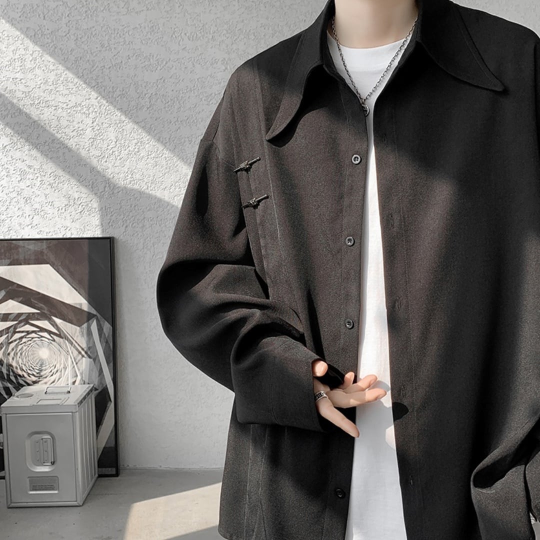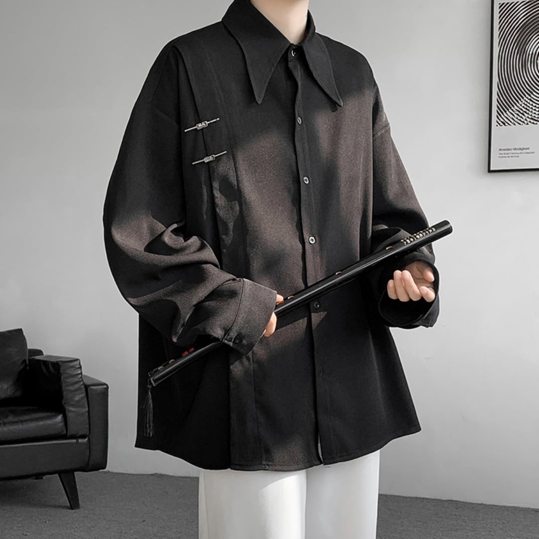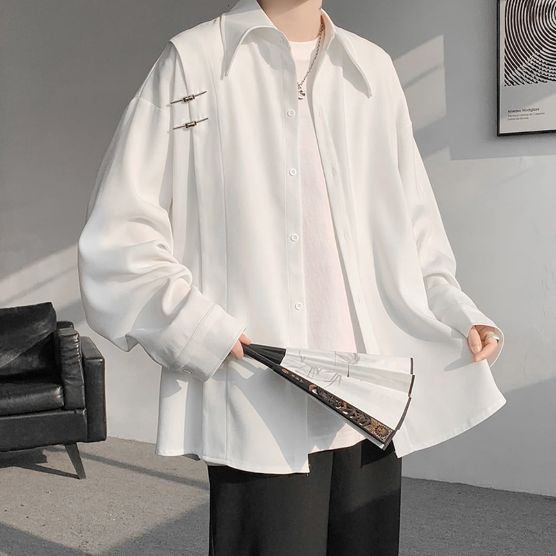 メタルピンバックルデザイン ルーズドロップシャツ 2カラー D10689