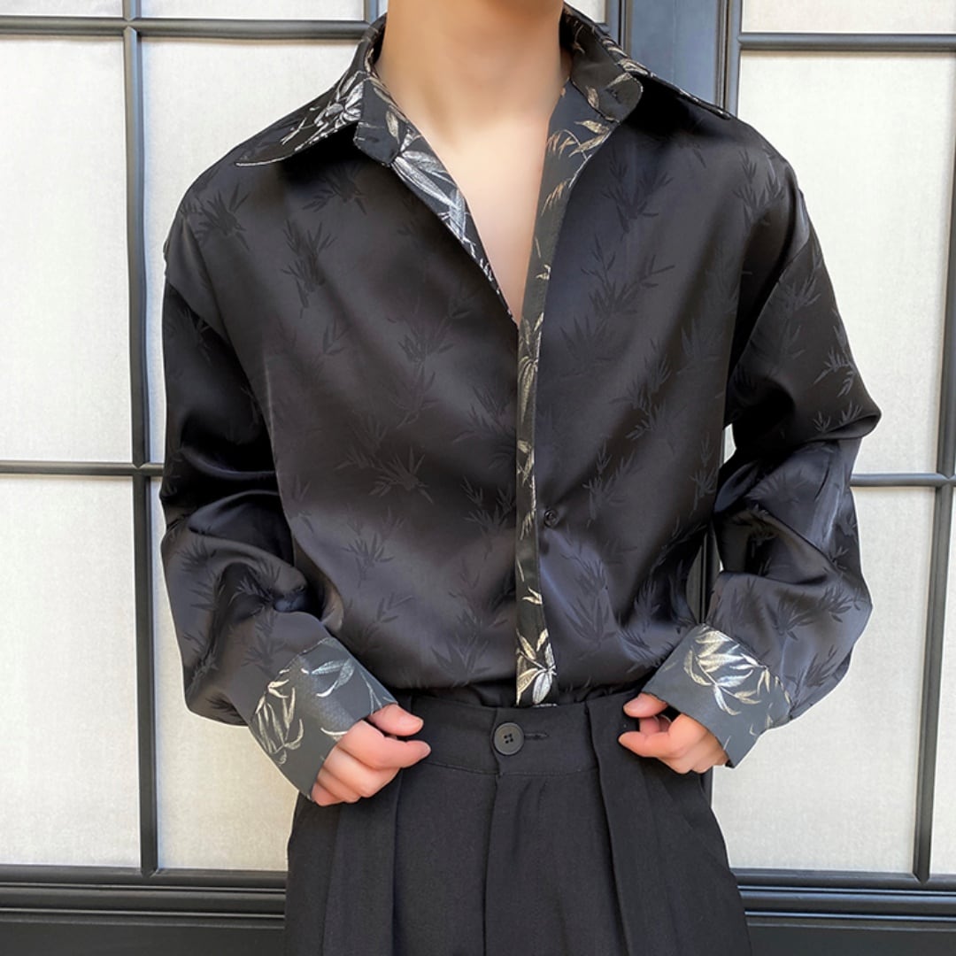 ジャガードデザイン 長袖ドレープシャツ 2カラー D10690