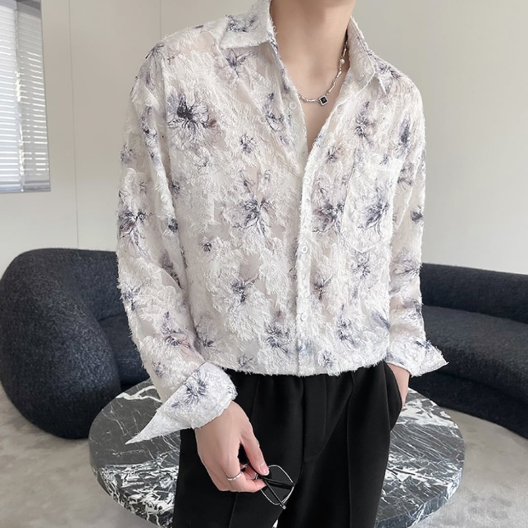立体刺繍 シアー長袖シャツ 2カラー D10700