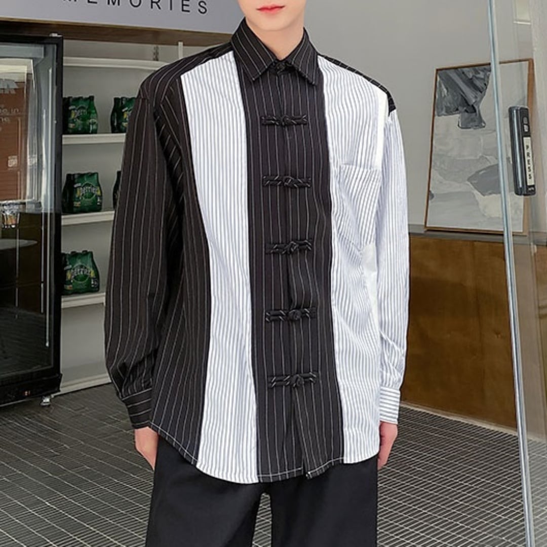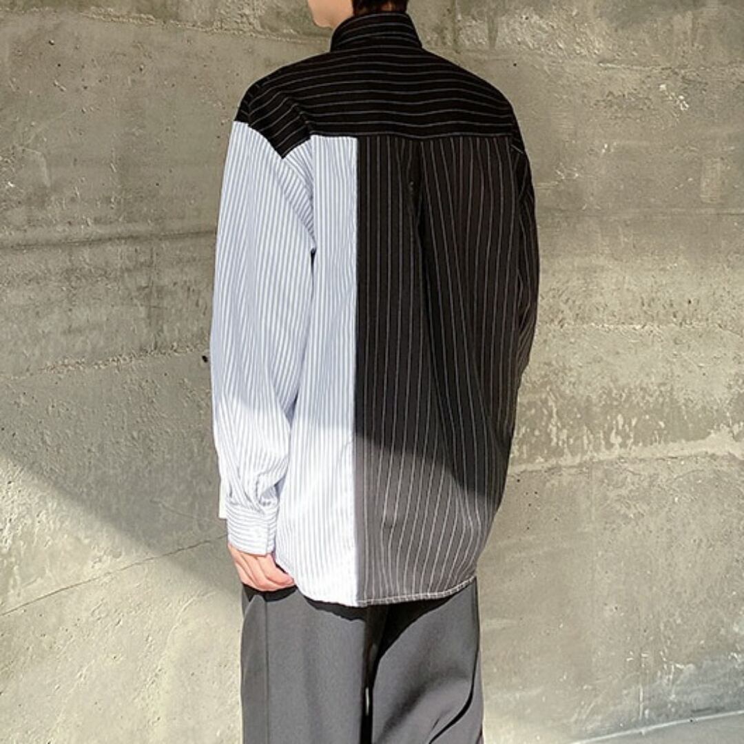 カラー切替 ストライプ柄長袖シャツ D10760