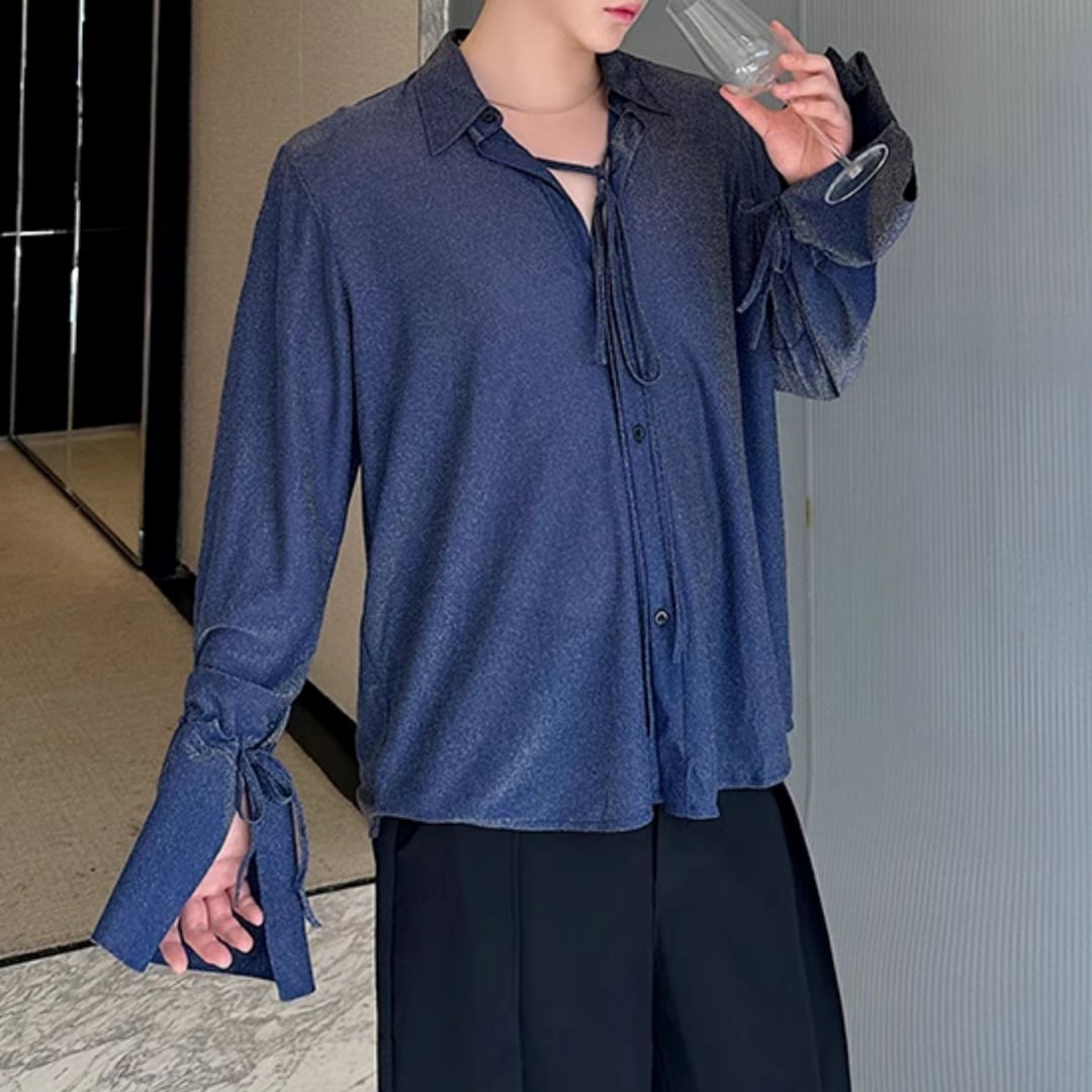 ベルスリーブ ラメデザイン長袖ドレープシャツ D11065