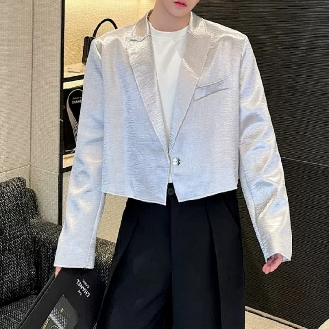 光沢感 ワンボタンショートジャケット 2カラー D11070