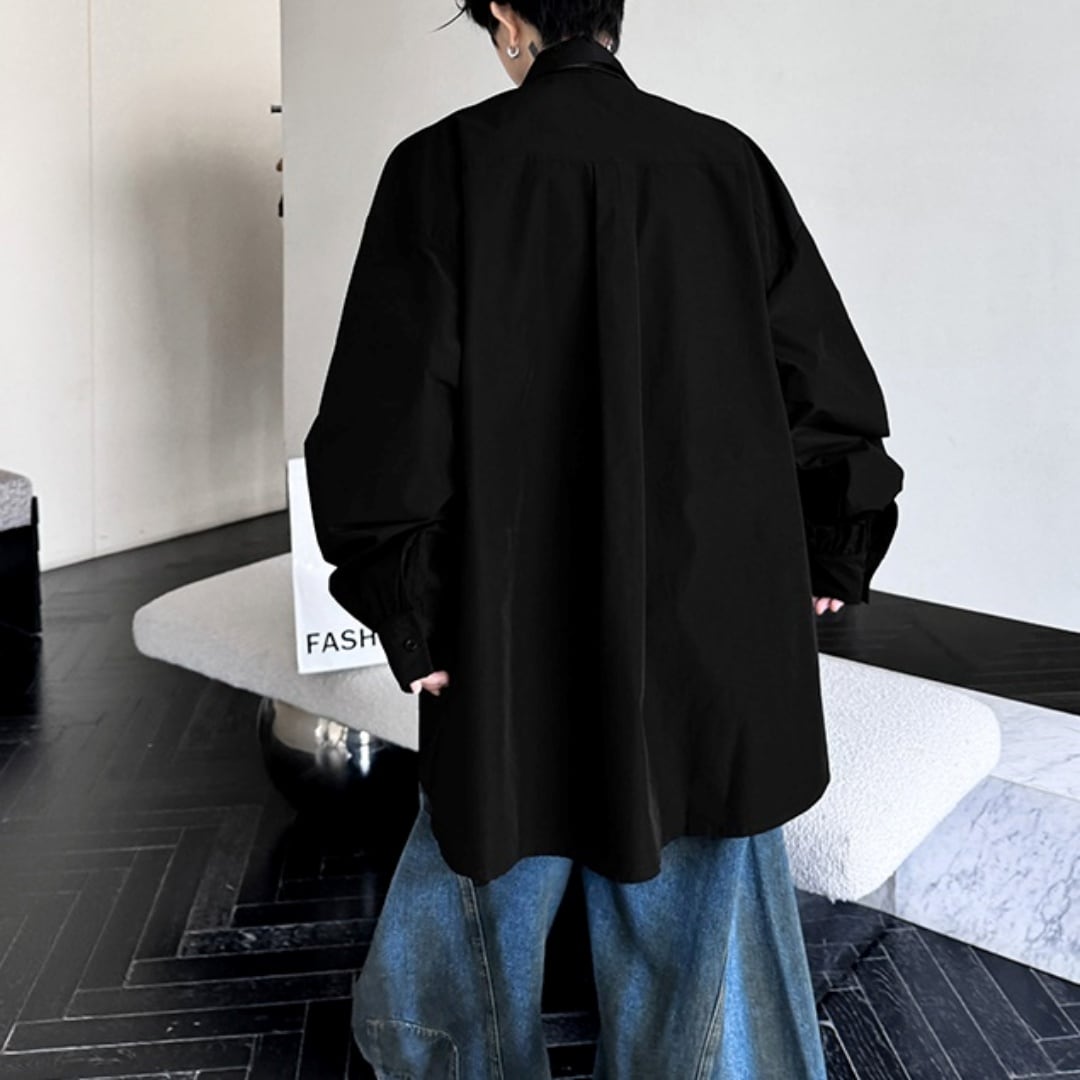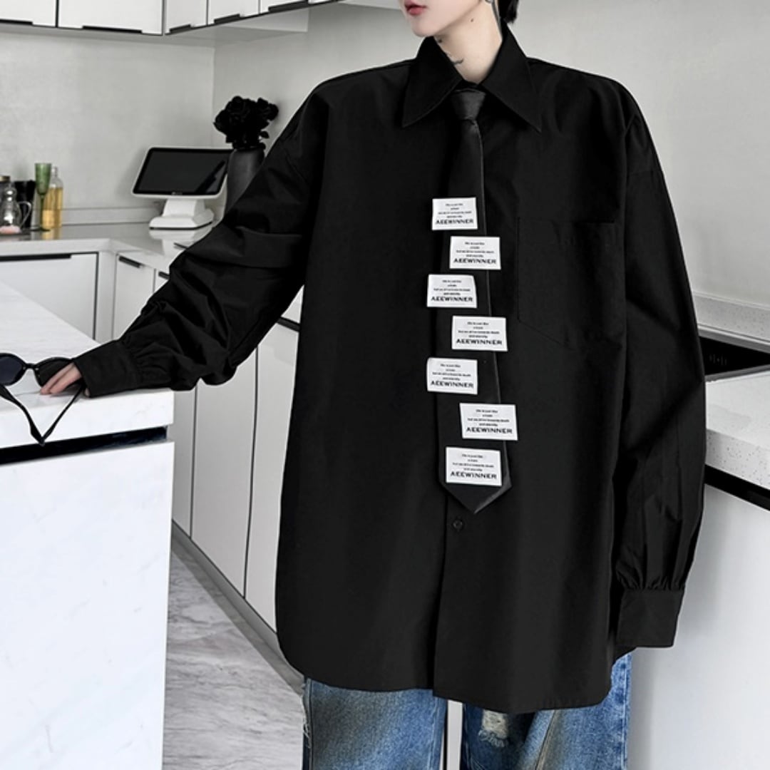 ラベルネクタイ 長袖ルーズシャツ 2カラー D11100