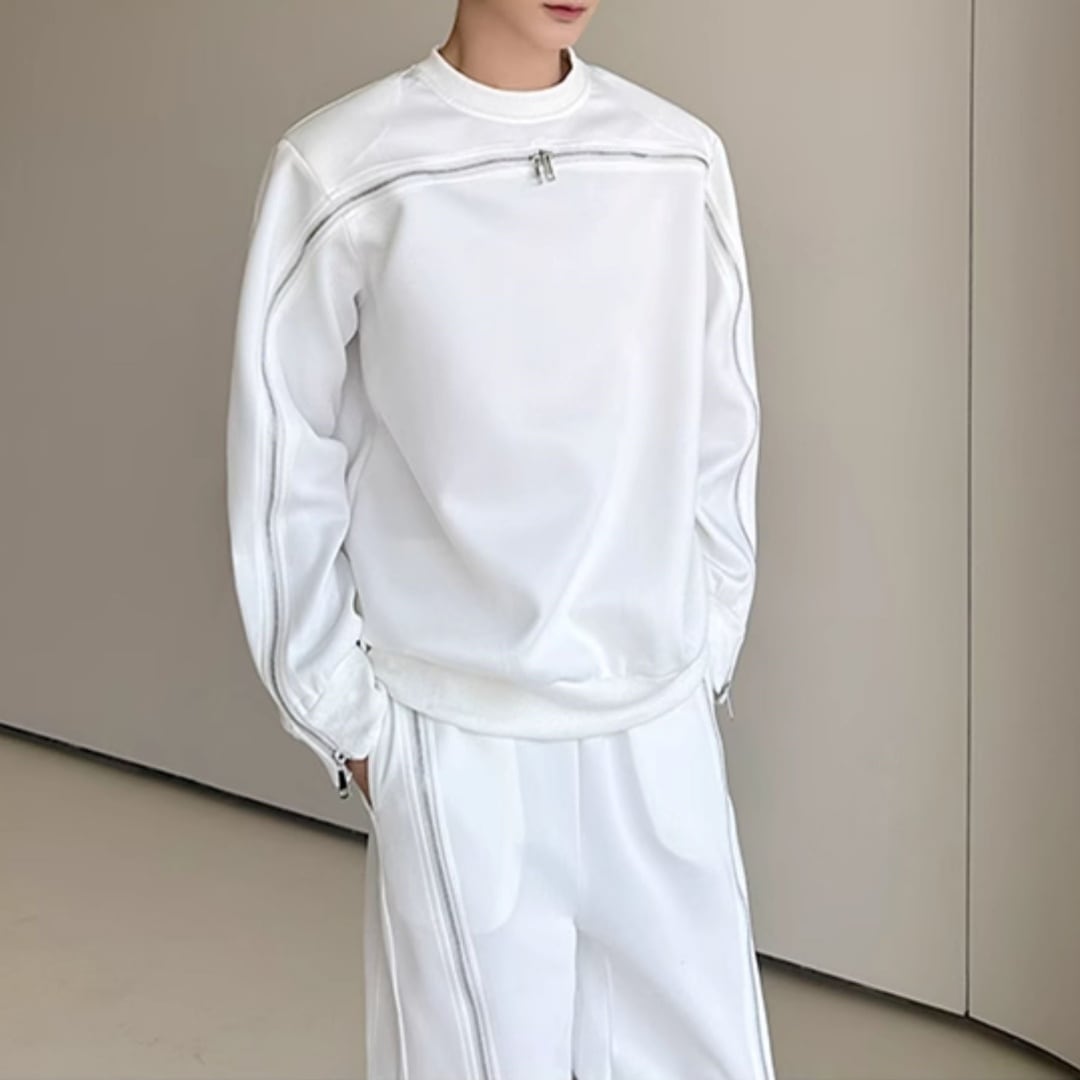 デザインジッパー ストリートスウェットセットアップ 2カラー D11132