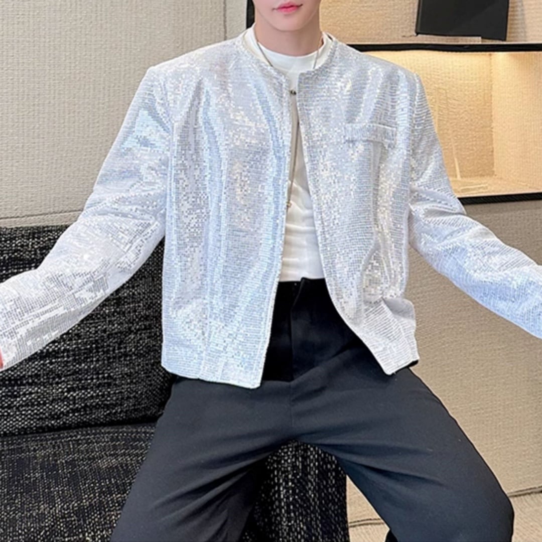 シンプル スパンコールノーカラージャケット 2カラー D11171