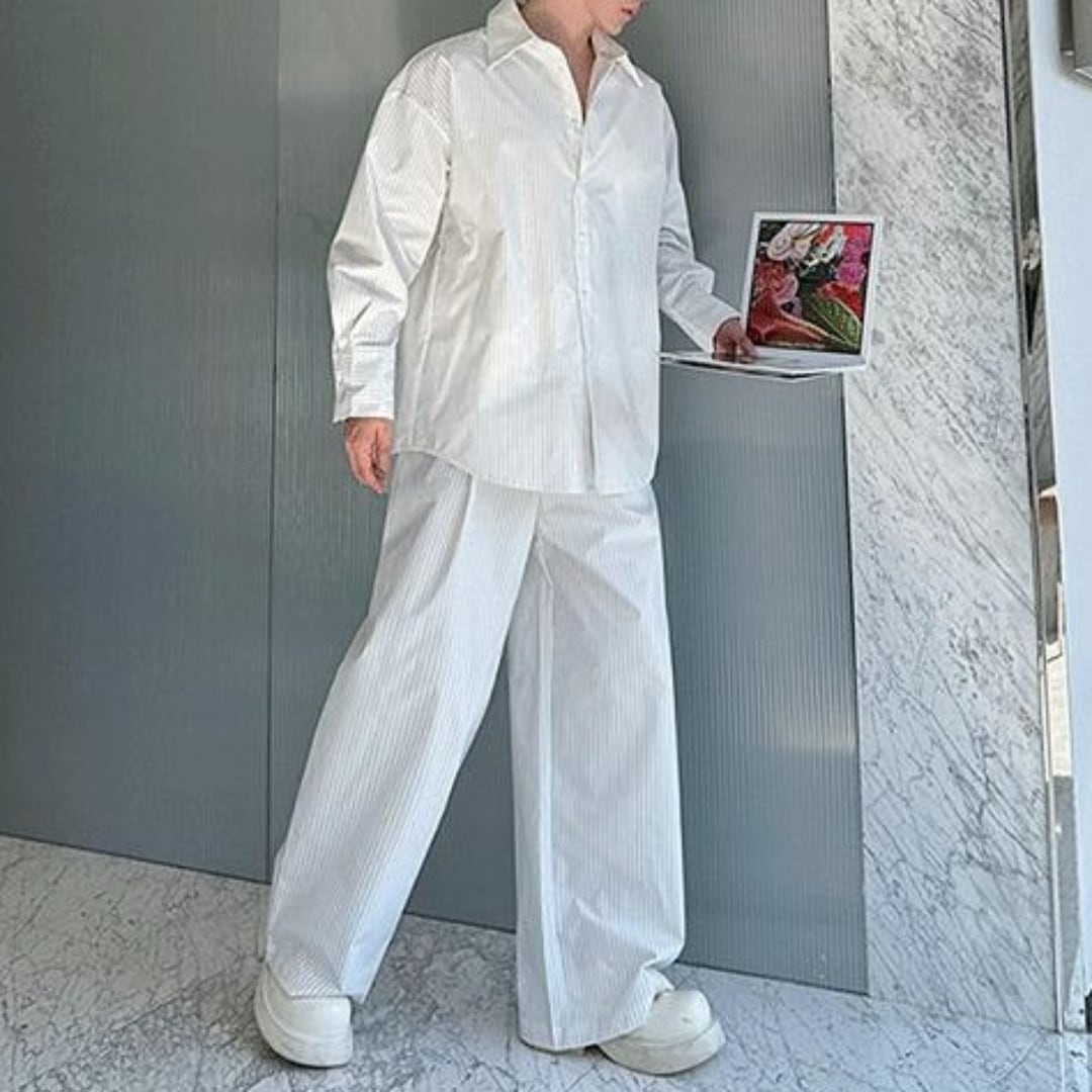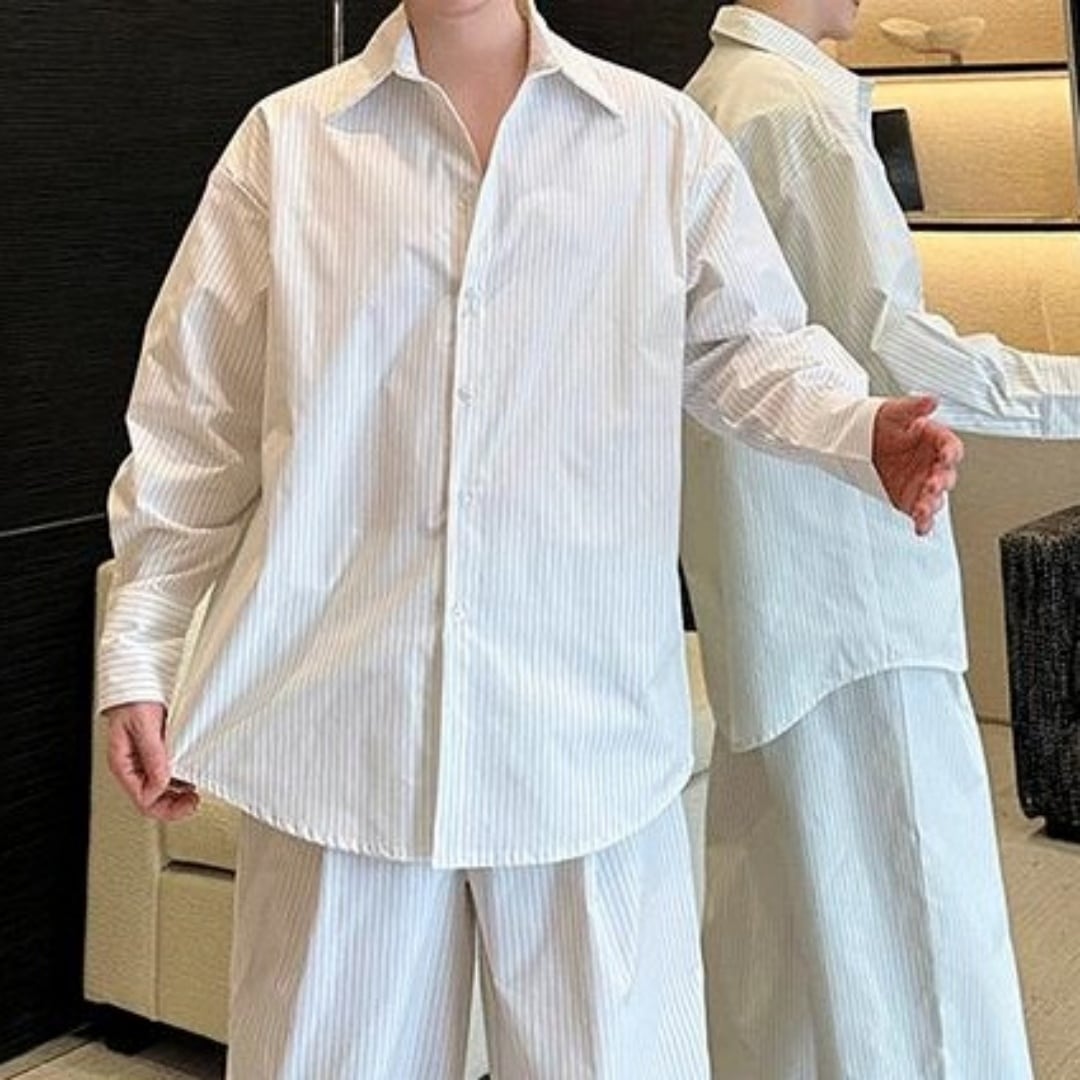 ルーズシルエット ストライプ柄シャツスーツ セットアップ D11173