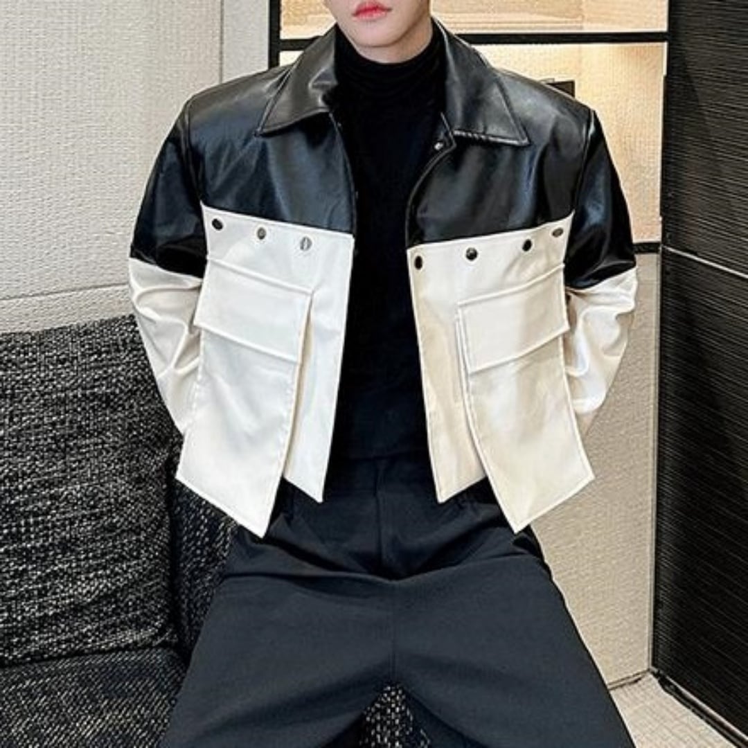 バイカラー PUレザービッグポケットジャケット D11177