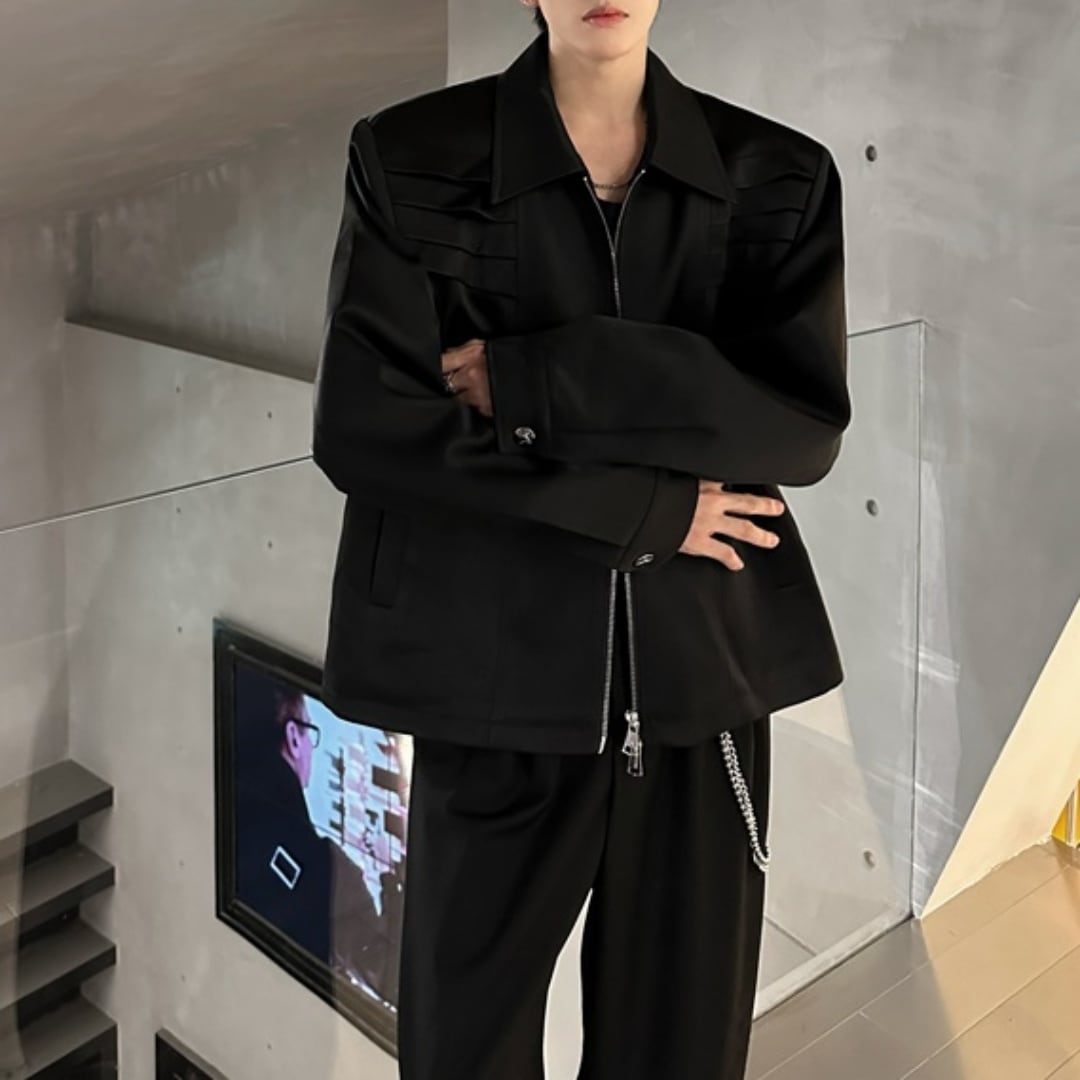 ダブルジップ プリーツステッチジャケット 2カラー D11185