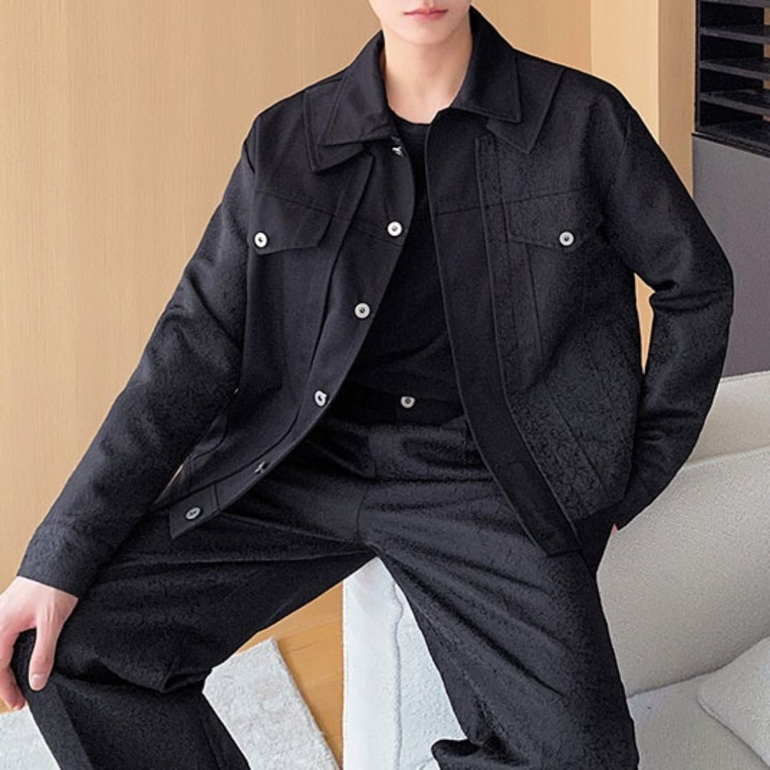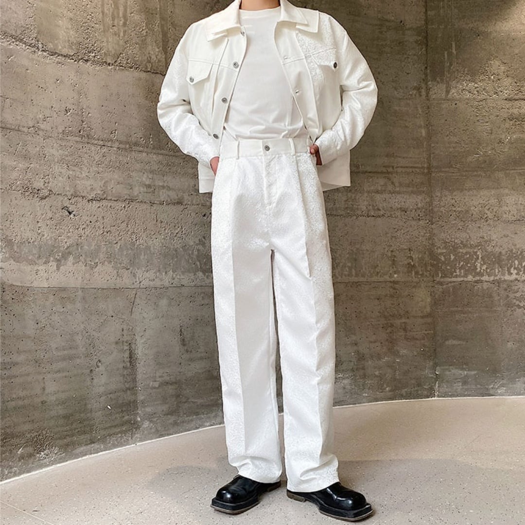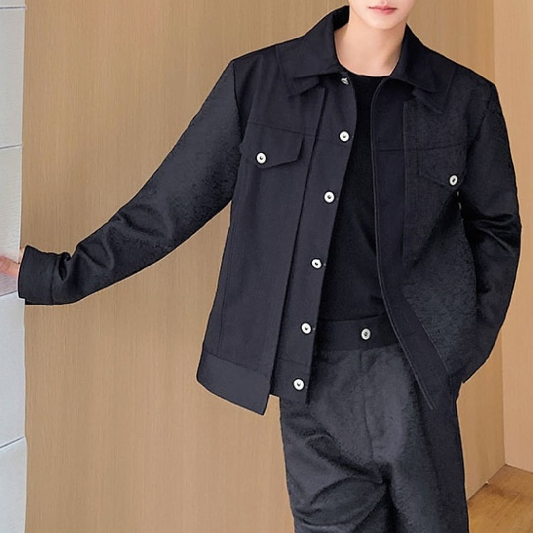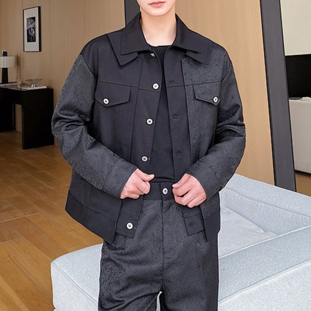 異素材切替 カジュアルジャケット&ストレートパンツ セットアップ 2カラー D11190
