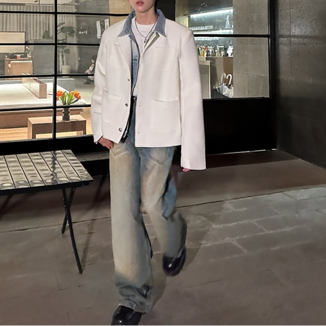 フェイクレイヤード デニムカラージャケット D11211