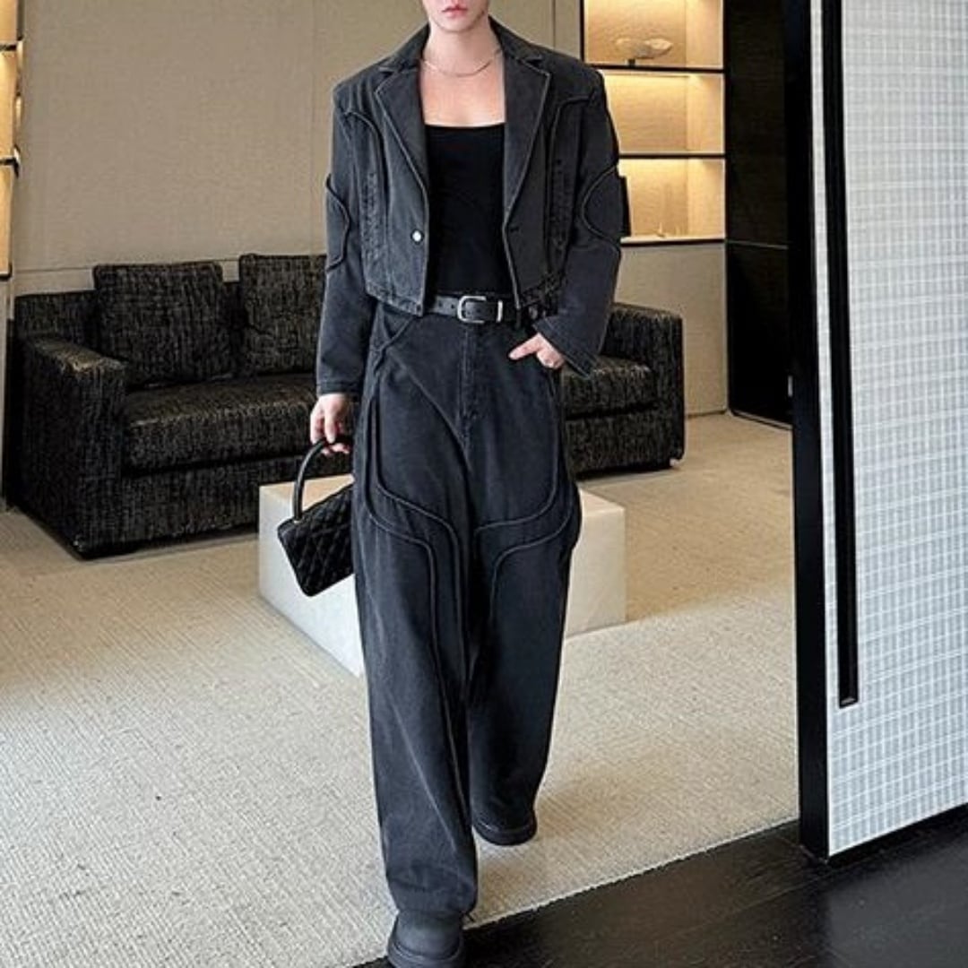 立体ラインデザイン ウォッシュデニムセットアップ D11232