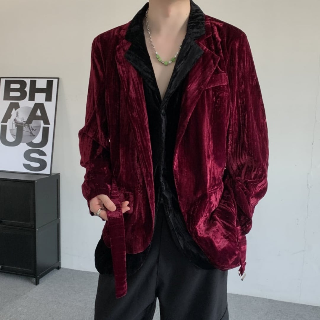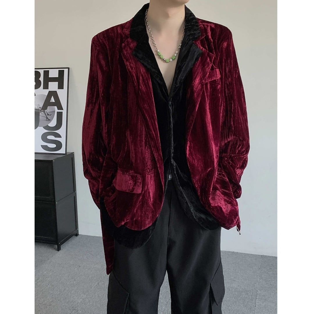 フェイクレイヤード ベルベットアシンメトリージャケット D11251