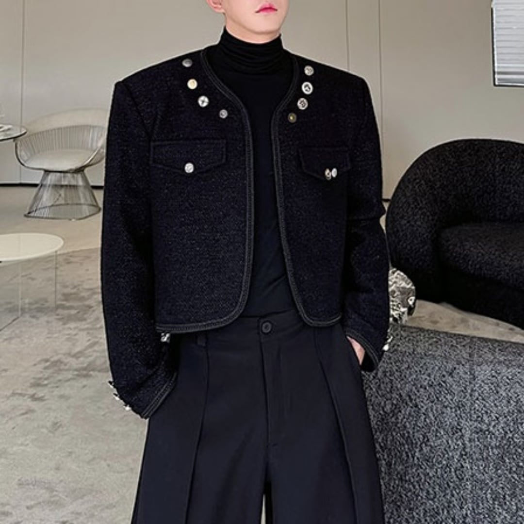デザインボタン装飾 ノーカラーショートジャケット D11293